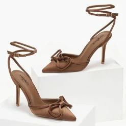 The Fashion Project Γόβες σατέν με φιόγκο – Καφέ