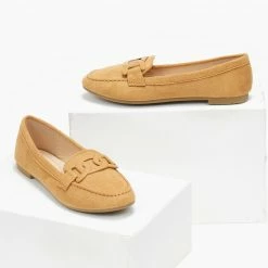 Suede Loafers με μεταλλικό στοιχείο Estil – Κάμελ
