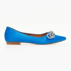 The Fashion Project Μπαλαρίνες μυτερές σατέν χωρίς τακούνι – Μπλε