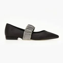 The Fashion Project Μπαλαρίνες σατέν με Strass φάσα – Μαύρο