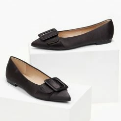 The Fashion Project Μπαλαρίνες σατέν μυτερές – Μαύρο
