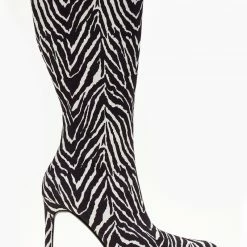 The Fashion Project Μπότες μυτερές Suede με λεπτό τακούνι – Λευκό/Μαύρο