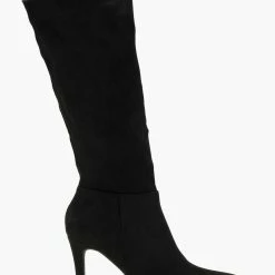 The Fashion Project Μπότες μυτερές Suede με λεπτό τακούνι – Μαύρο