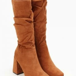 The Fashion Project Μπότες Suede με λεπτό τακούνι – Κάμελ