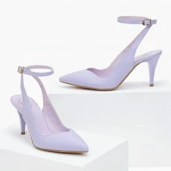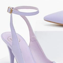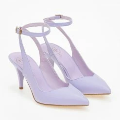 Γόβες μυτερές tfp με δέσιμο στο ύψος του αστραγάλου. Έχουν λεπτό τακούνι. Δερμάτινος πάτος. Ελληνικής κατασκευής.