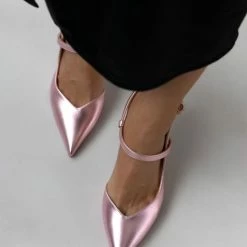 Γόβες μεταλλικές ανοιχτές tfp. Έχουν λοξό λουράκι στο κουτεπιέ. Δένουν στο πλάι. Δερμάτινος πάτος. Είναι μυτερές με V cut άνοιγμα. Ελληνικής κατασκευής.