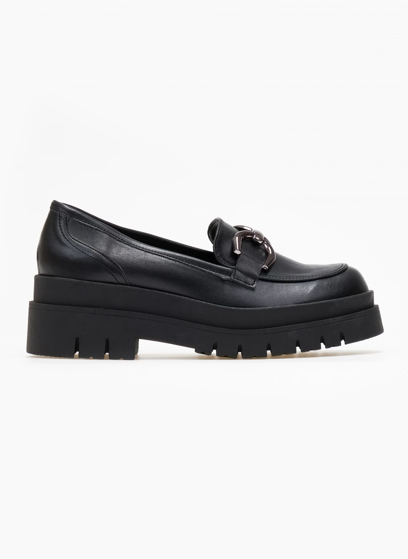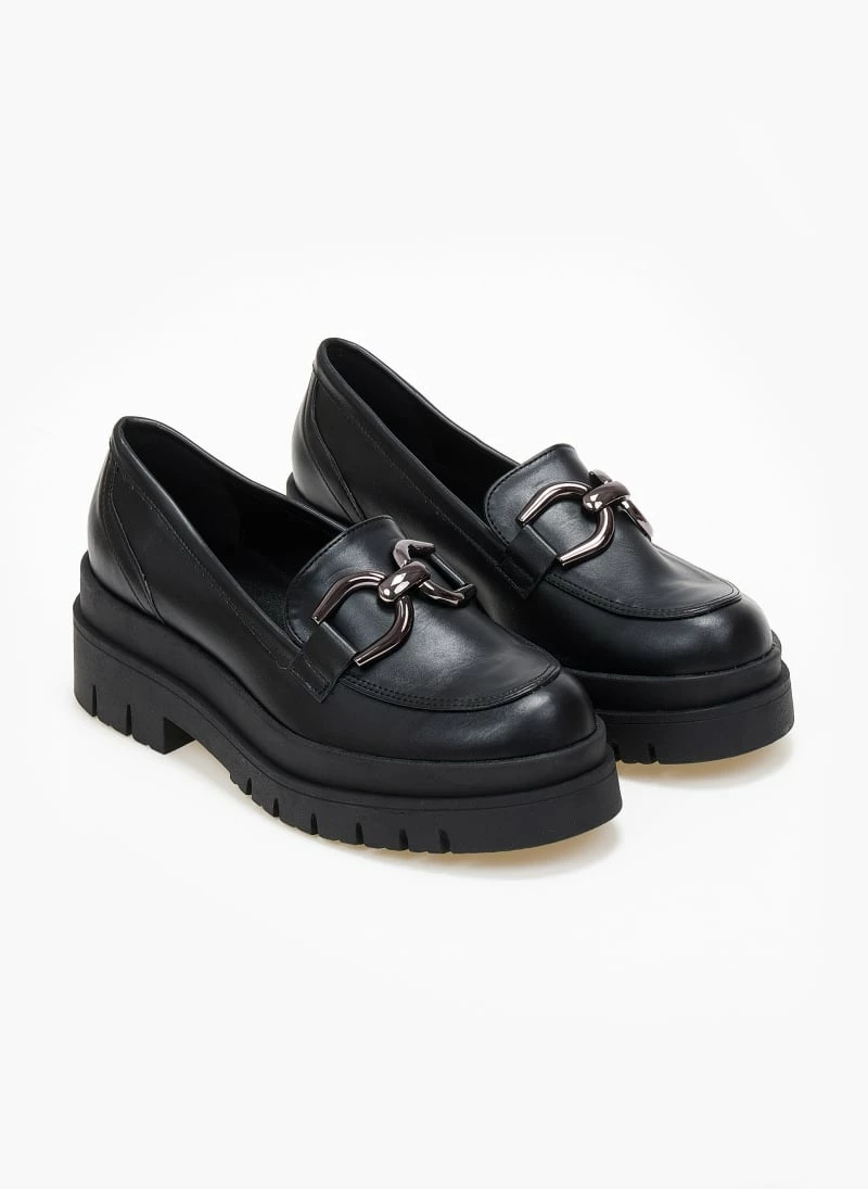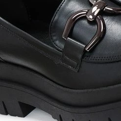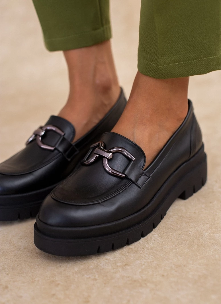 Loafers estil με chunky τρακτερωτή σόλα . Έχουν μεταλλικό διακοσμητικό και εσωτερικές ραφές. Ελληνικής κατασκευής.