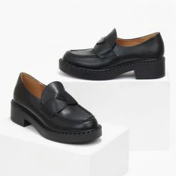 Loafers estil με chunky τρακτερωτή σόλα . Έχουν μεταλλικό διακοσμητικό και εσωτερικές ραφές. Ελληνικής κατασκευής.