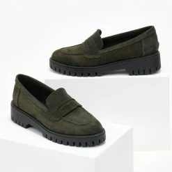 Loafers estil από δέρμα καστόρι με τρακτερωτή σόλα. Δερμάτινος πάτος. Ελληνικής κατασκευής