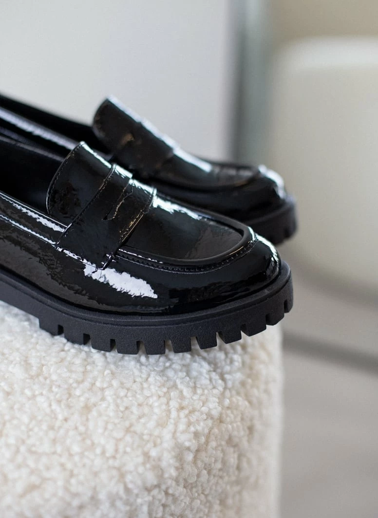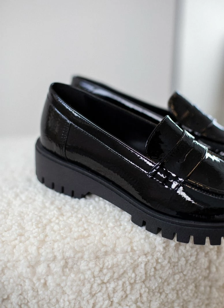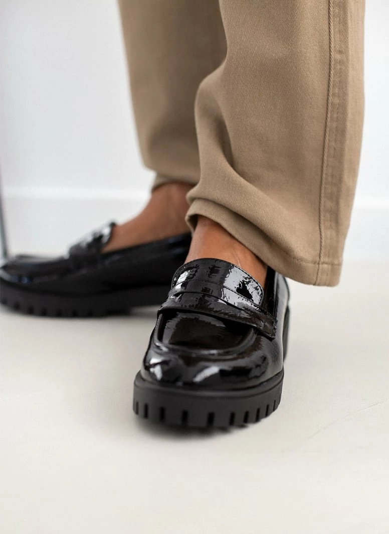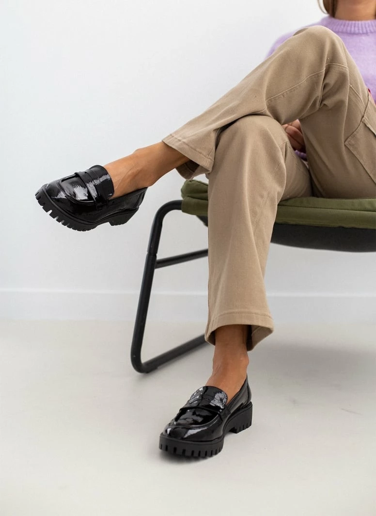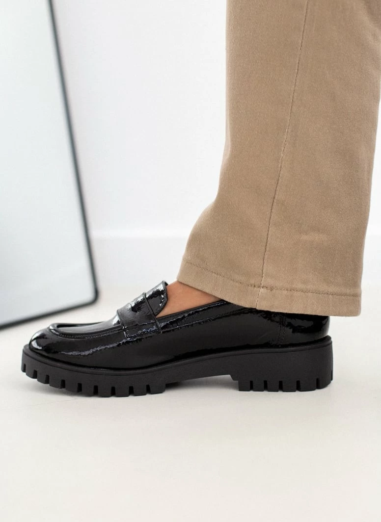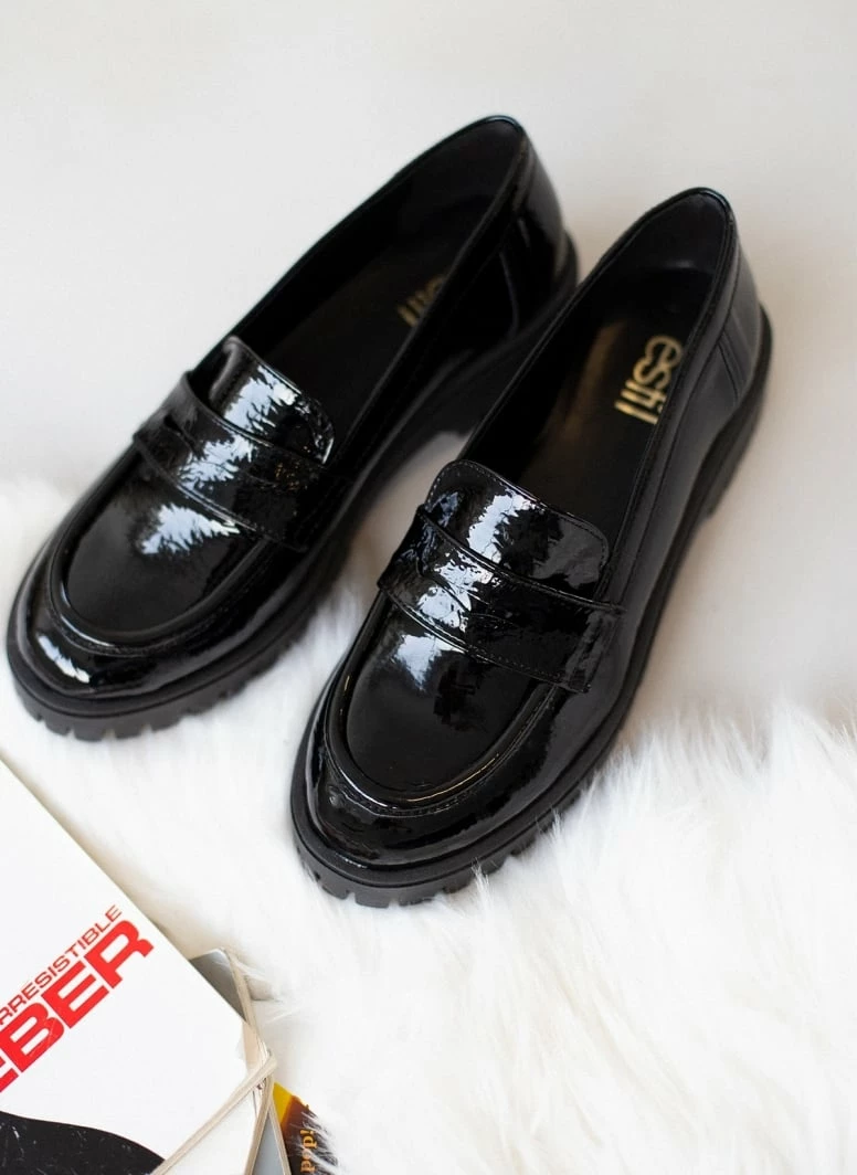 Loafers λουστρίνι Estil. Έχουν τρακτερωτή σόλα. Ελληνικής κατασκευής.