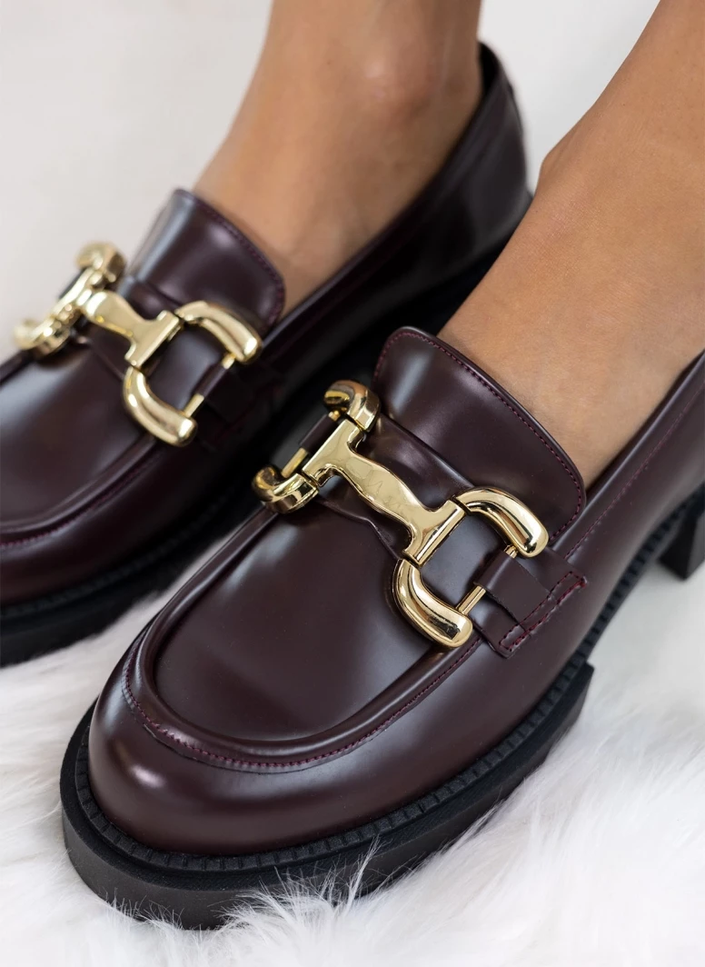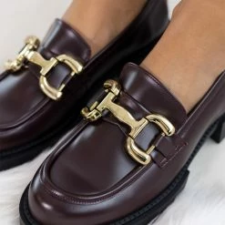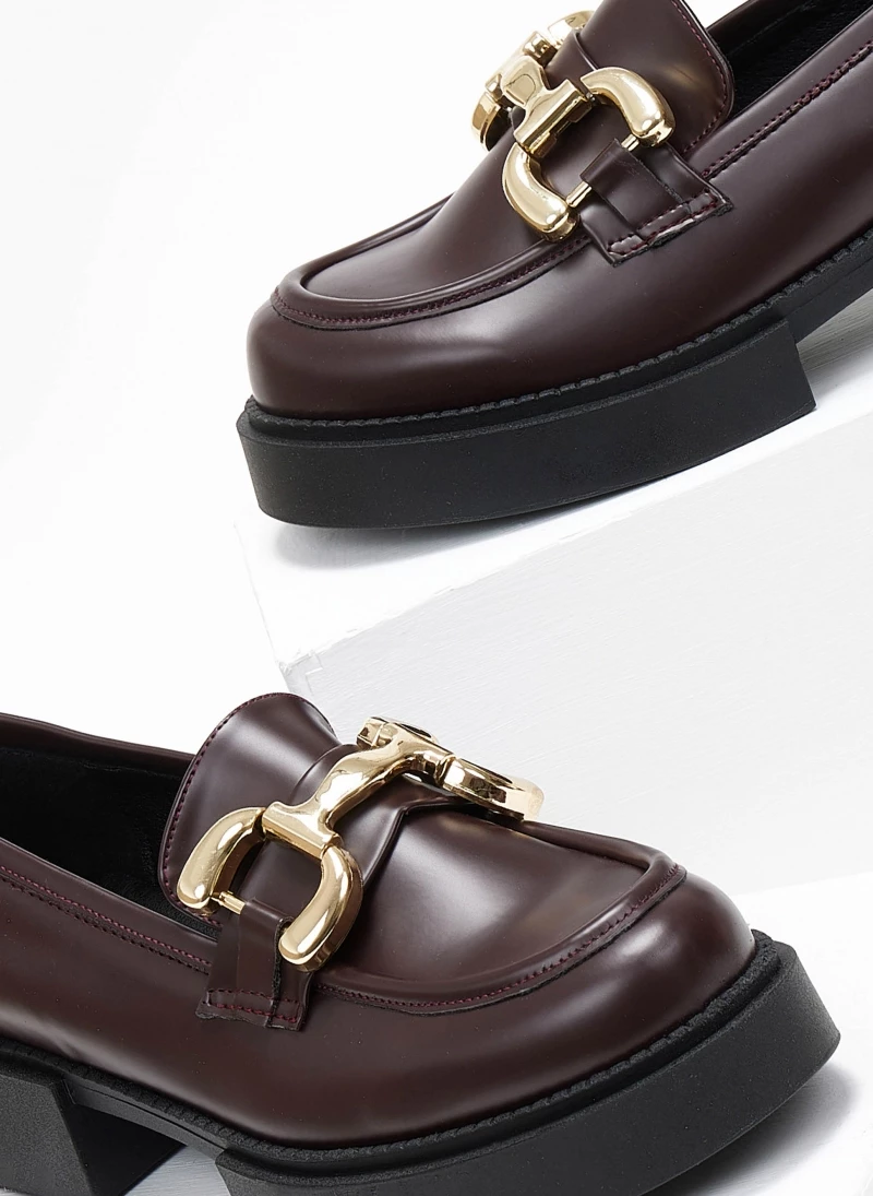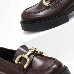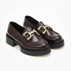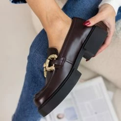 Loafers estil. Έχουν εξωτερική ραφή στη μπροστινή πλευρά. Μεταλλικό διακοσμητικό στο επάνω μέρος. Δερμάτινος πάτος. Ελληνικής κατασκευής.