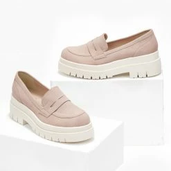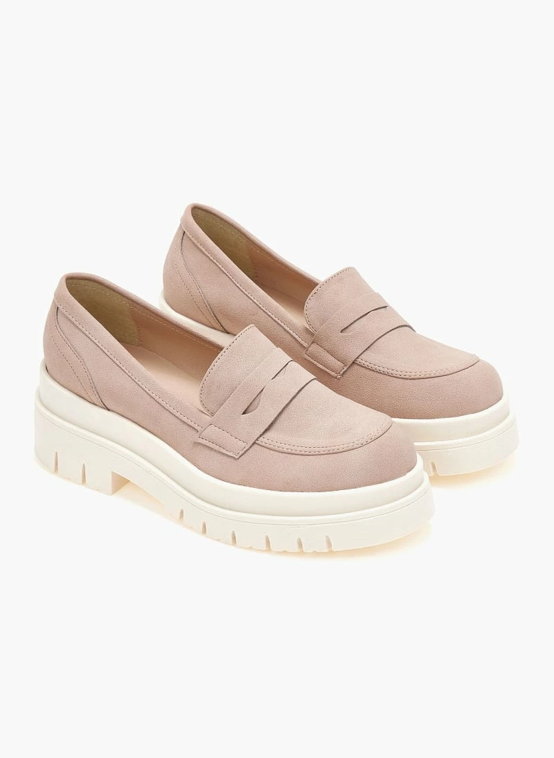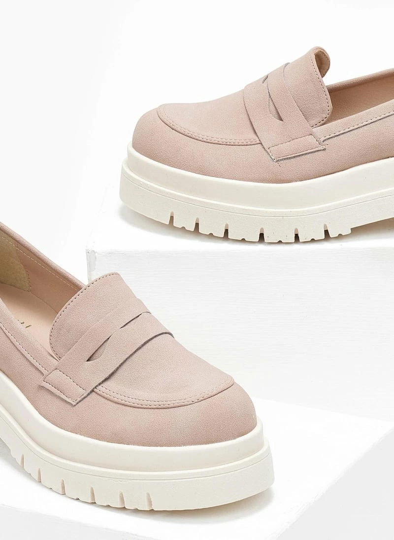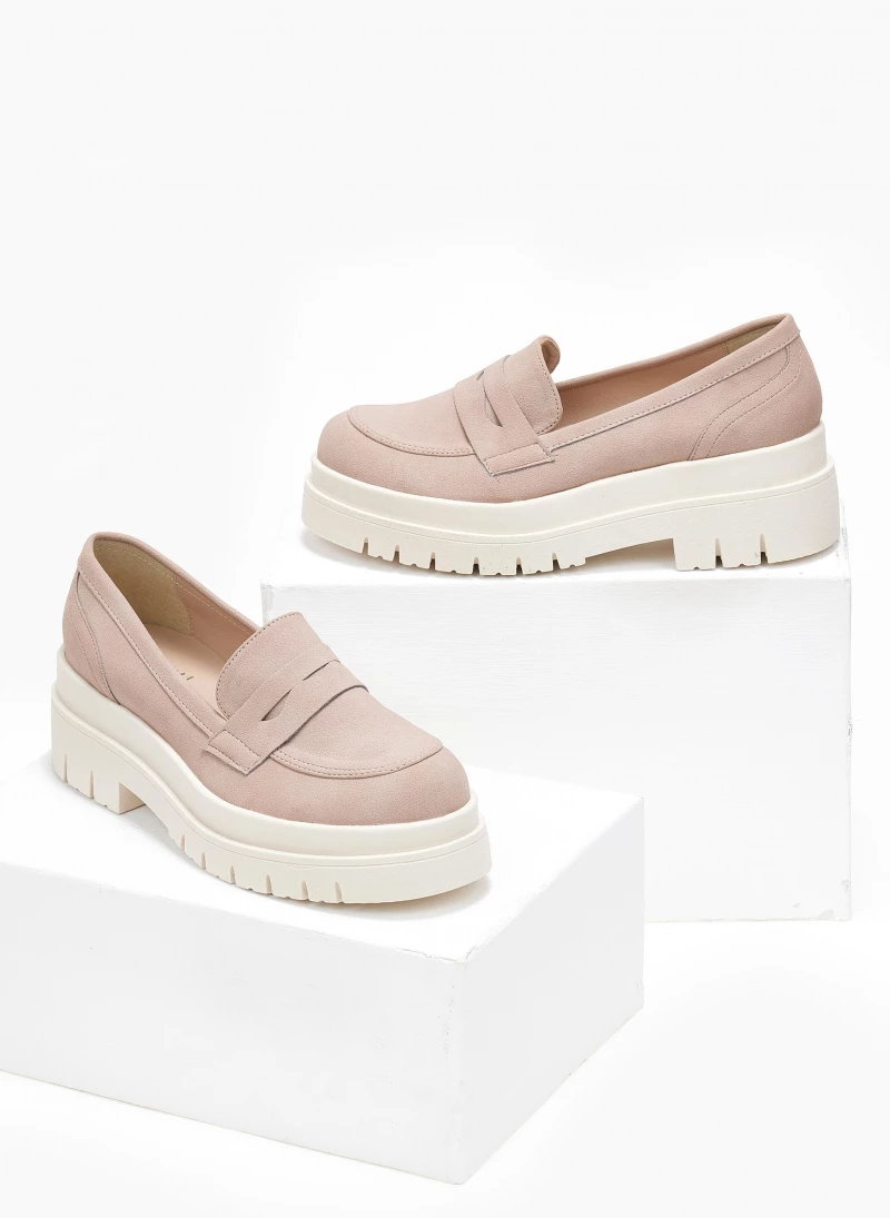 Loafers suede estil με τρακτερωτή σόλα και εξωτερικές ραφές. Έχουν ψηλή chunky σόλα. Ελληνικής κατασκευής.