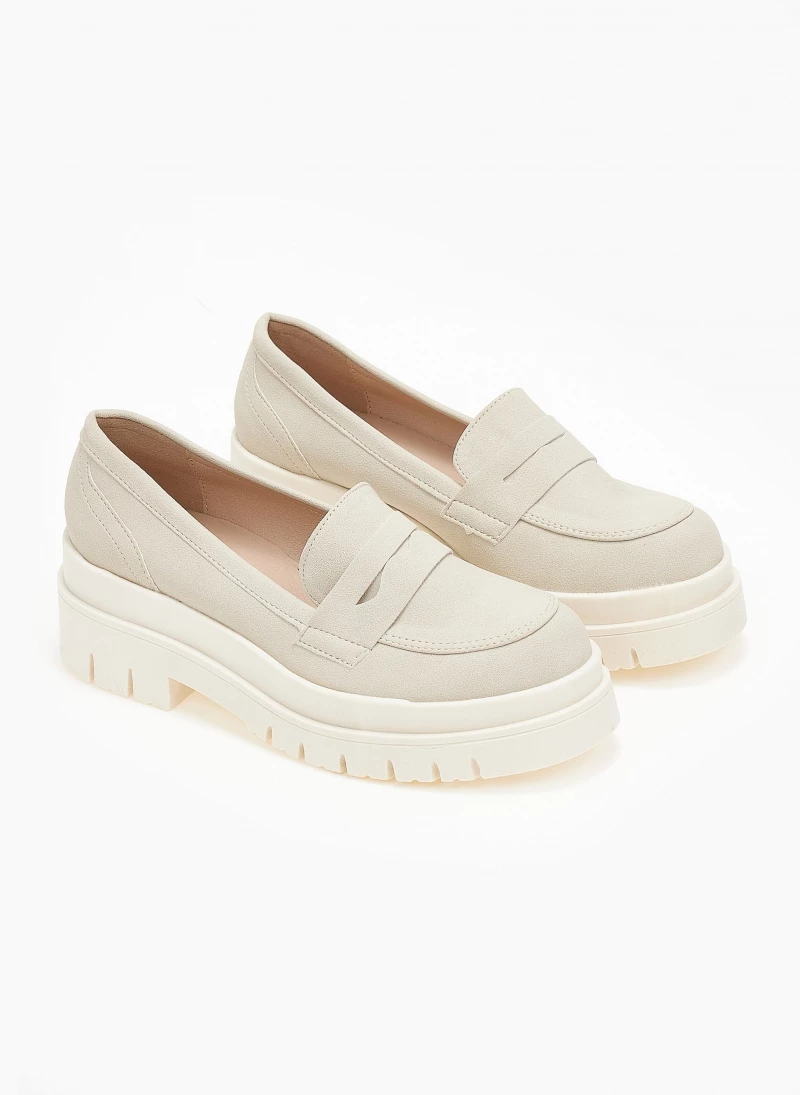 Loafers suede estil με τρακτερωτή σόλα και εξωτερικές ραφές. Έχουν ψηλή chunky σόλα. Ελληνικής κατασκευής.