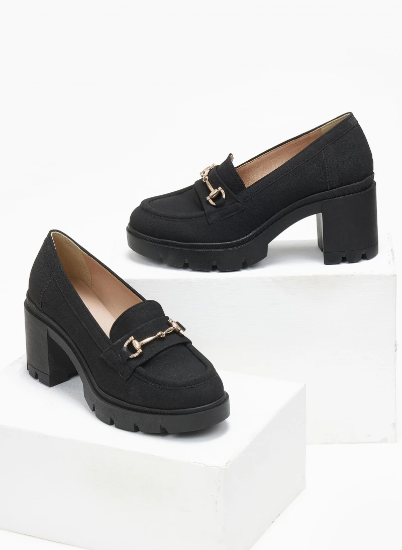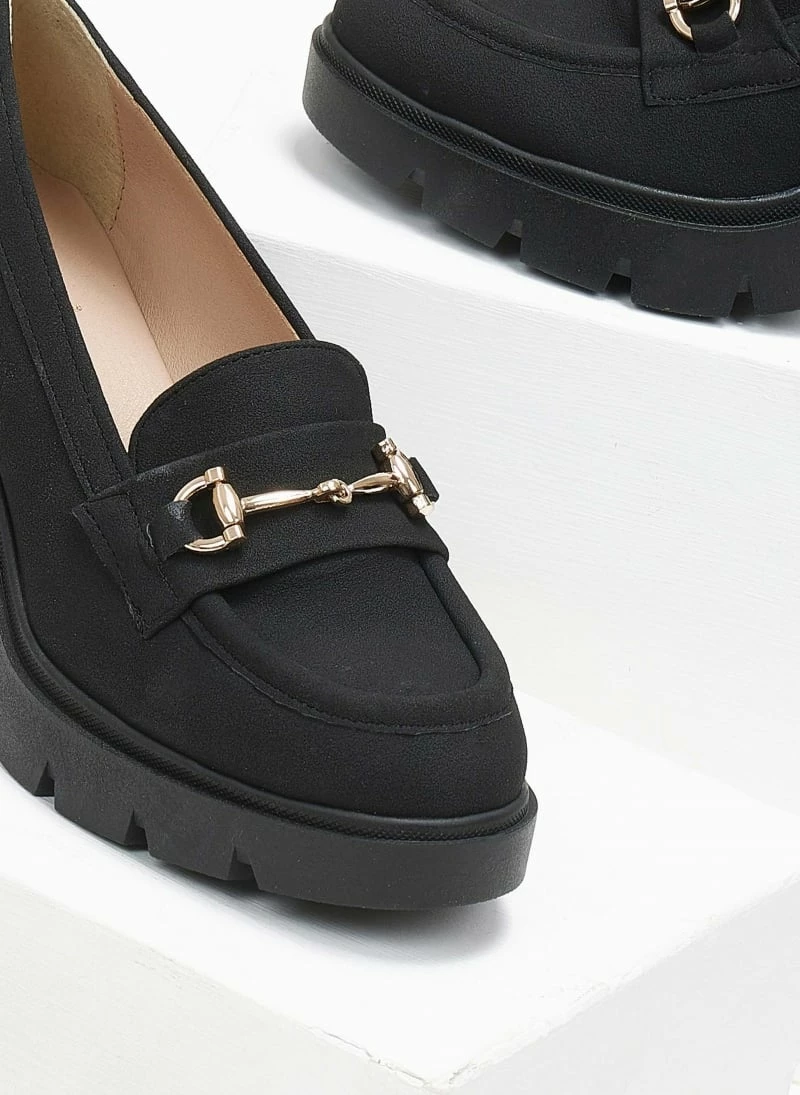 Loafers suede με chunky σόλα και τακούνι estil. Έχουν μεταλλικό διακοσμητικό στο επάνω μέρος. Ελληνικής κατασκευής