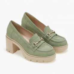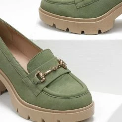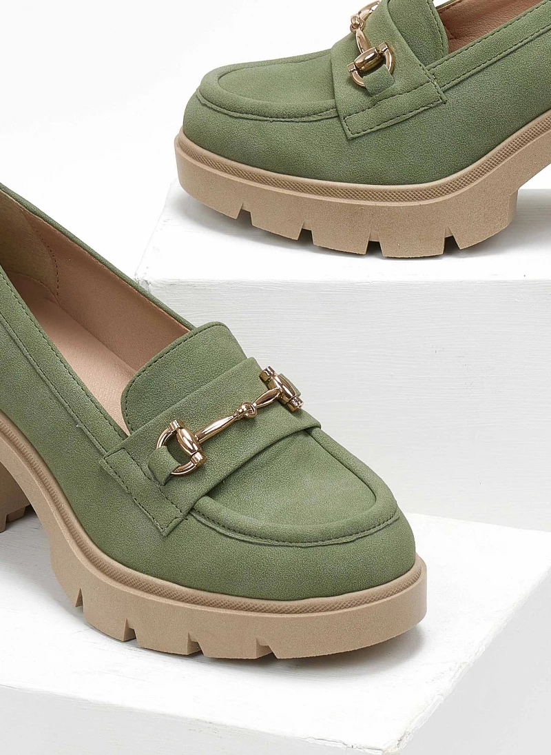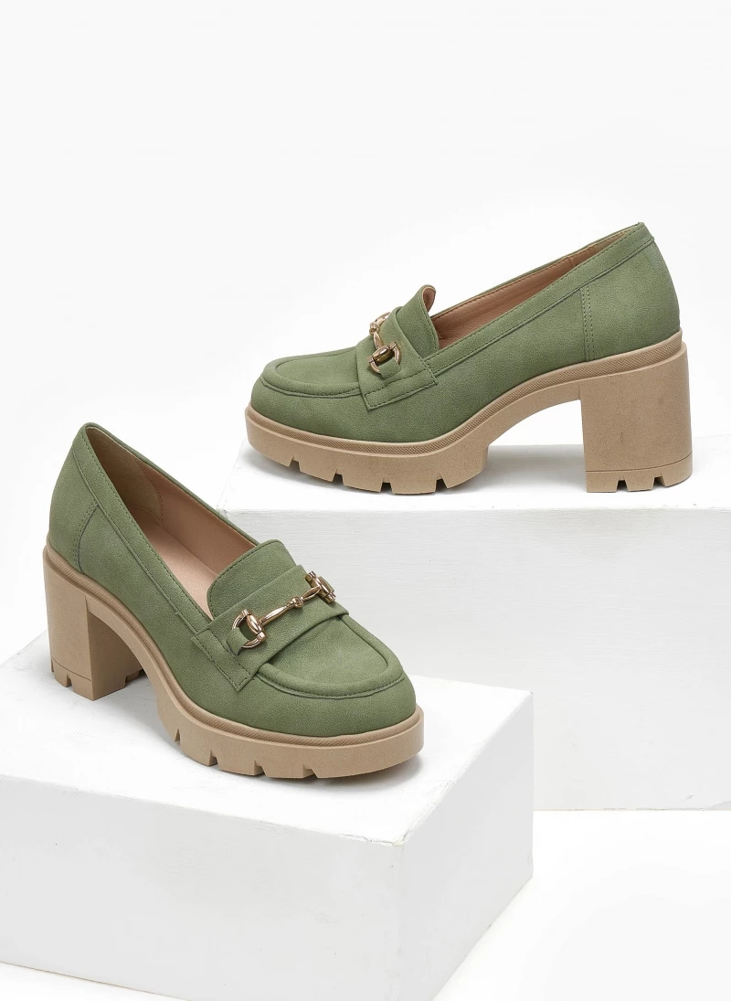 Loafers suede με chunky σόλα και τακούνι estil. Έχουν μεταλλικό διακοσμητικό στο επάνω μέρος. Ελληνικής κατασκευής