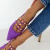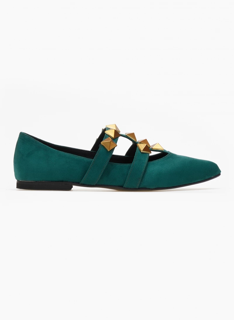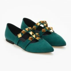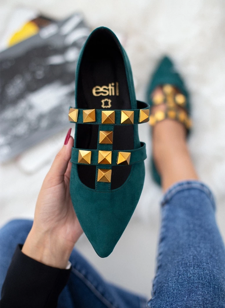 Mules μυτερά suede estil. Έχουν σχέδιο με μεταλλικά τρουκς στο επάνω μέρος. Δερμάτινος πάτος. Ελληνικής κατασκευής.