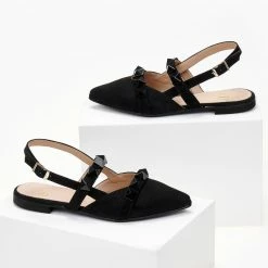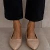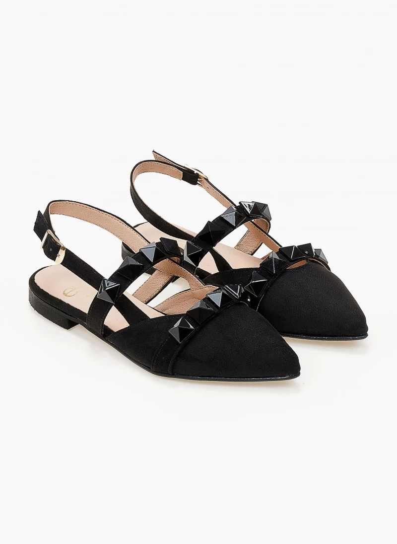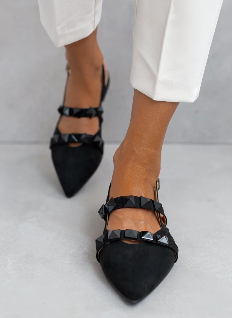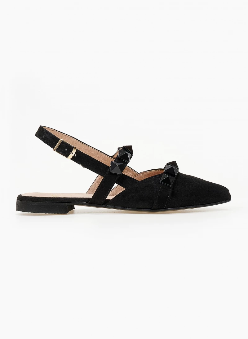Estil μπαλαρίνες suede μυτερές. Δένουν με λουράκι στο πλά. Έχουν τρουκς ίδιο χρώμα. Δερμάτινος πάτος. Ελληνικής κατασκευής.