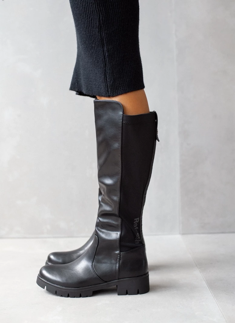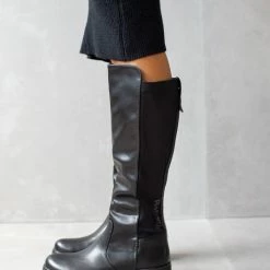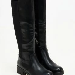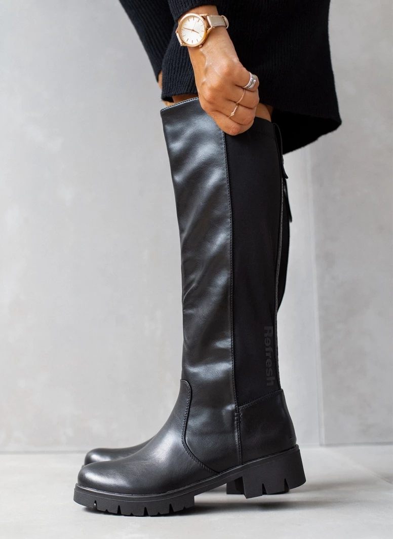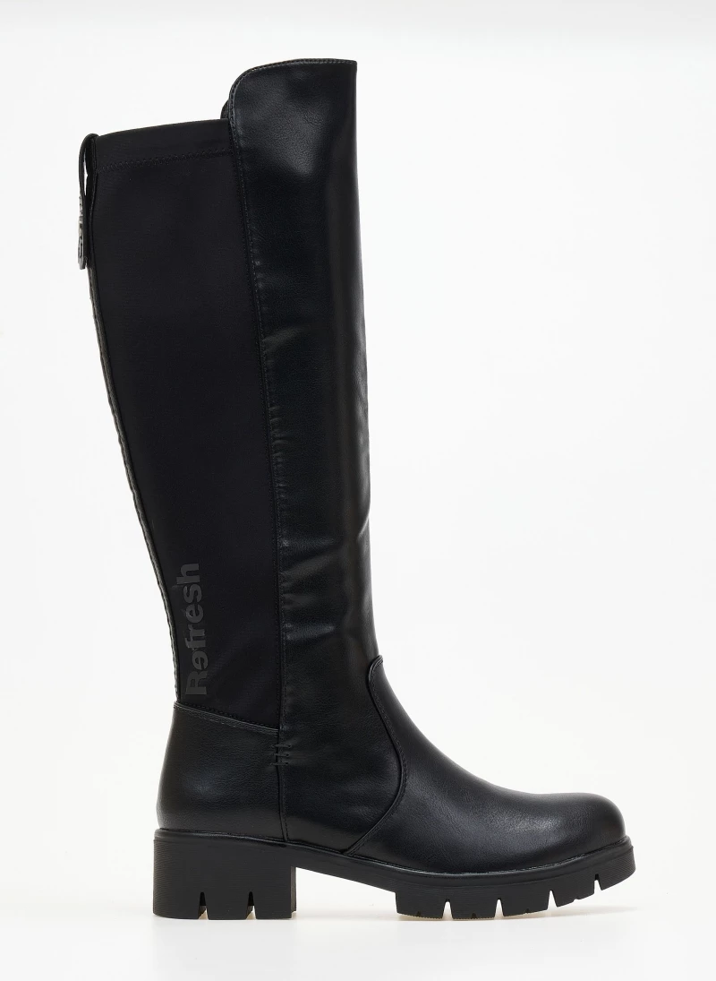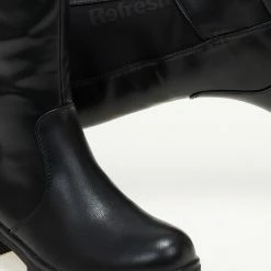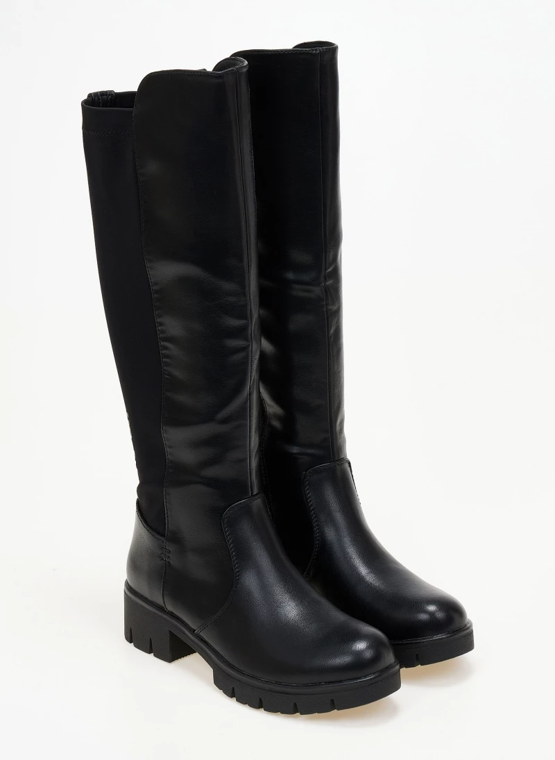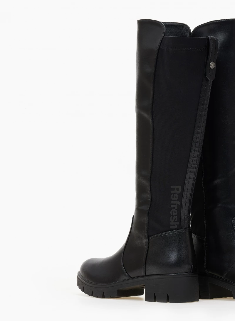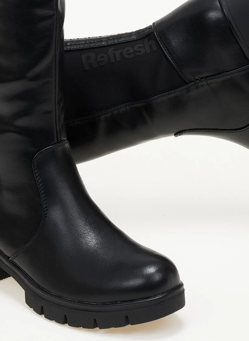 Μπότες chunky σε στρογγυλή γραμμή. Έχουν ελαστικό τμήμα στο πλάι για καλύτερη εφαρμογή. Διακριτικό λογότυπο. Τρακτερωτή σόλα. Vegan approved.