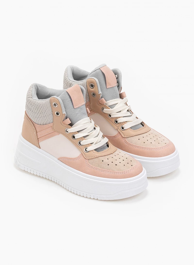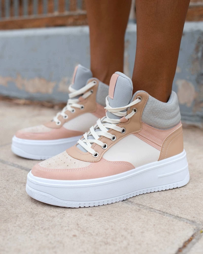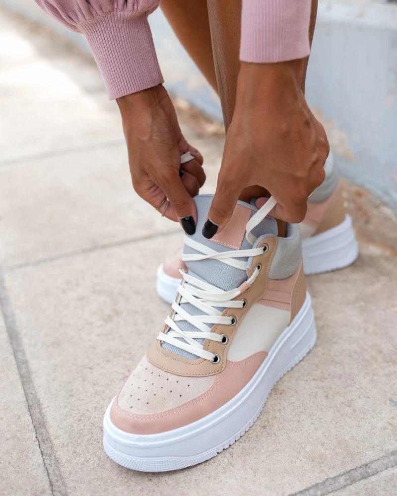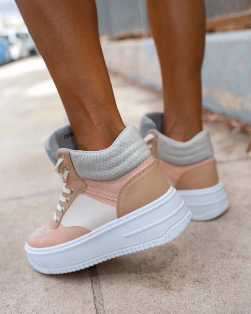 Αθλητικά μποτάκια σε συνδυασμούς χρωμάτων.Έχουν ψηλή ίσια σόλα.