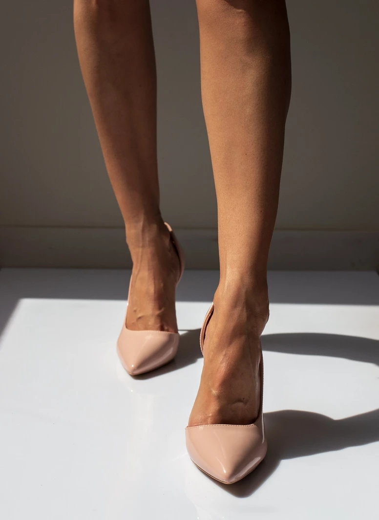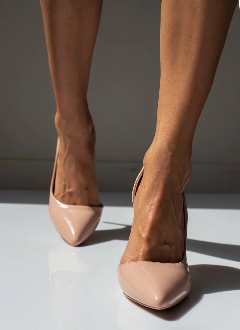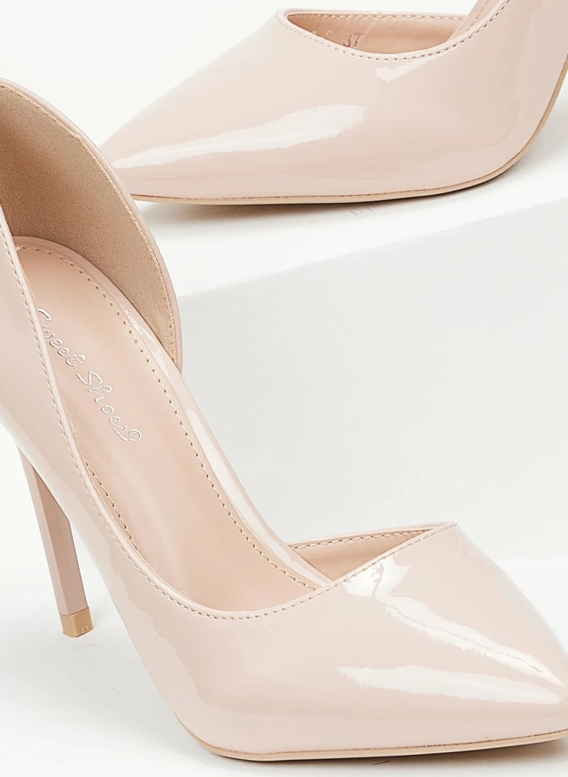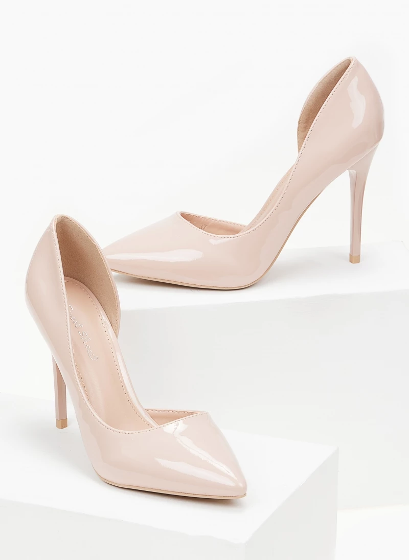 Λουστρίνι μυτερές γόβες με άνοιγμα στο πλάι. Έχουν ψηλό λεπτό τακούνι.