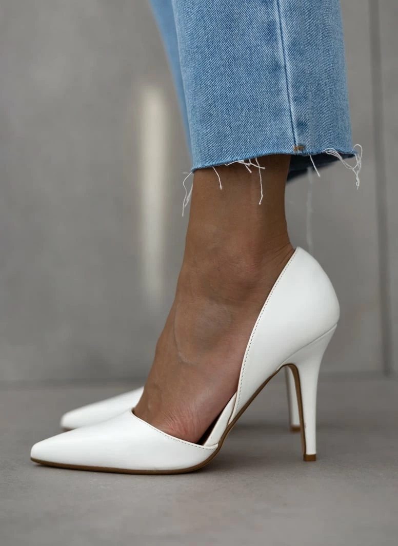Ψηλές μυτερές γόβες με λεπτό τακούνι. Έχουν ανοίγματα στο πλάι.