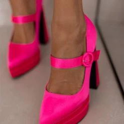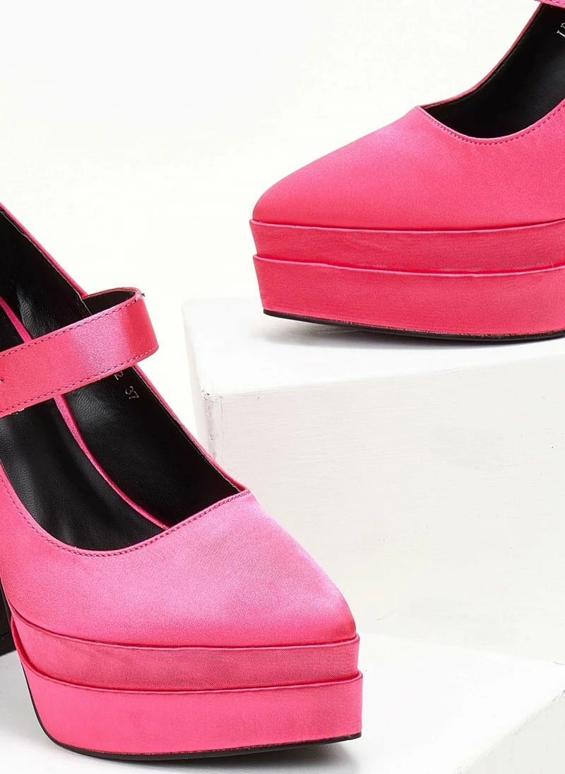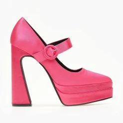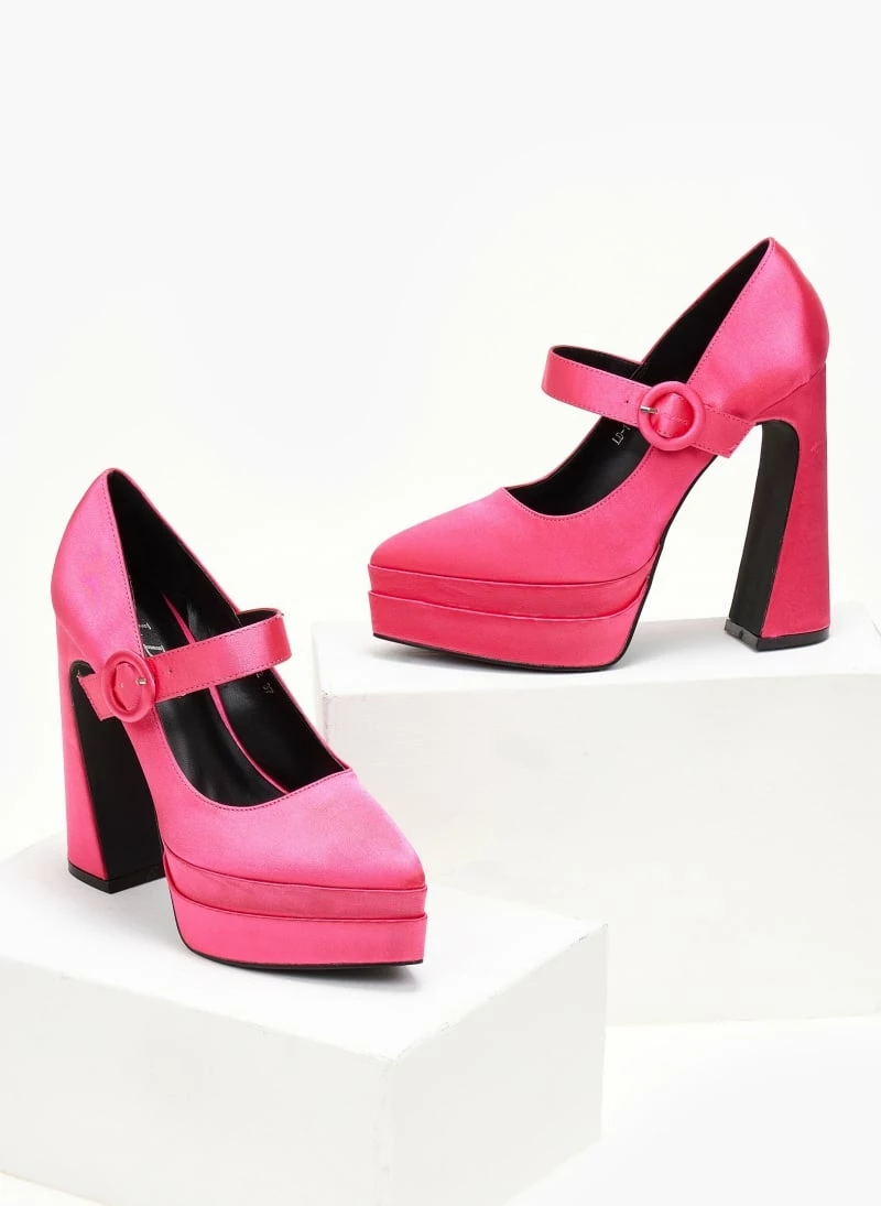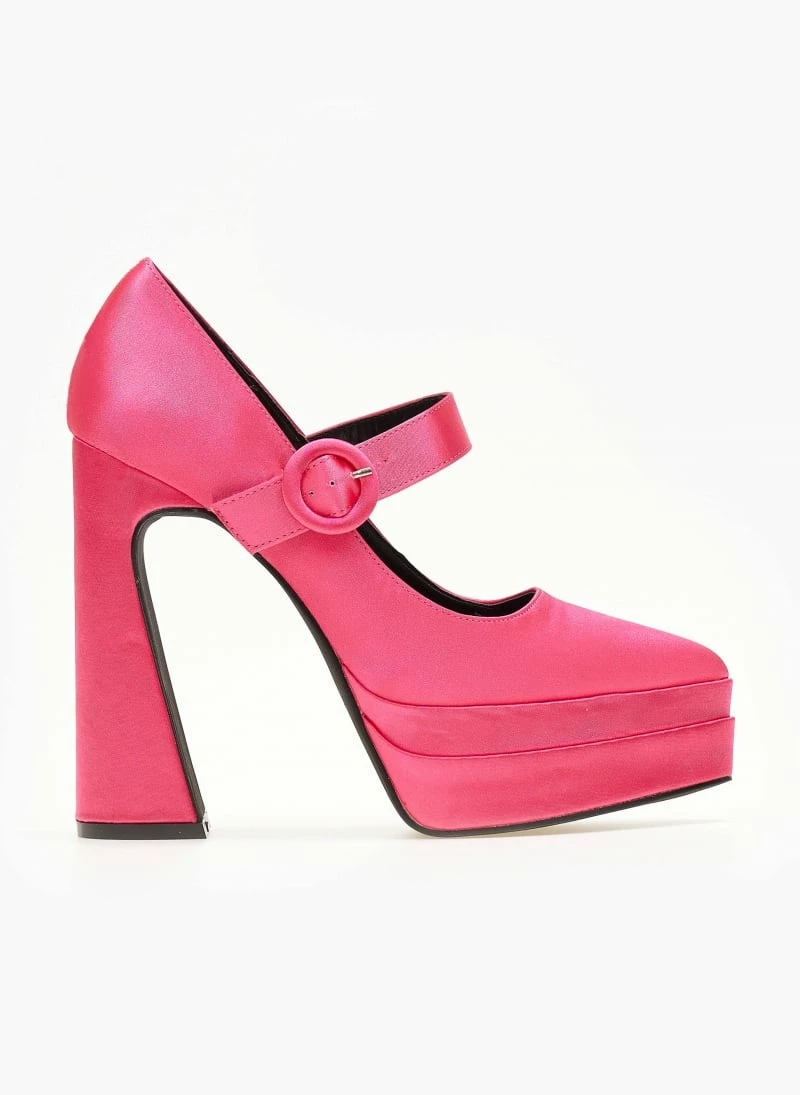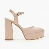 Γόβες flatform με ψηλή σόλα και χοντρό τακούνι. Δένουν με μπαρέτα στο ύψος του κουτεπιέ.