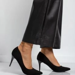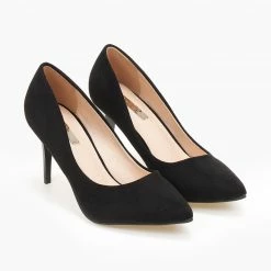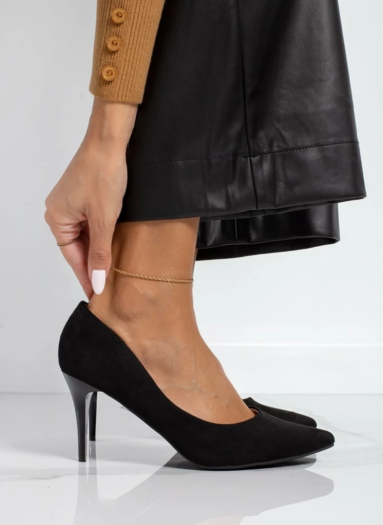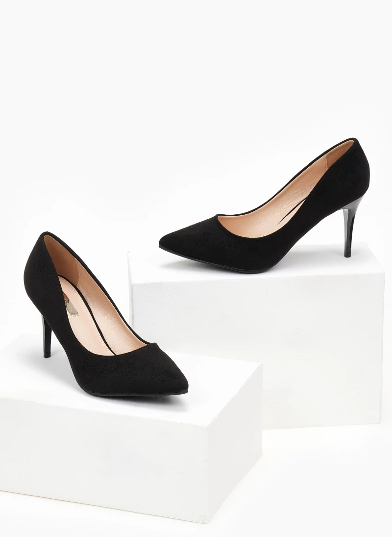 Basic suede μυτερές γόβες. Έχουν γυαλιστερό λεπτό τακούνι.