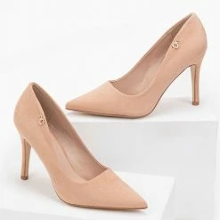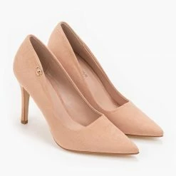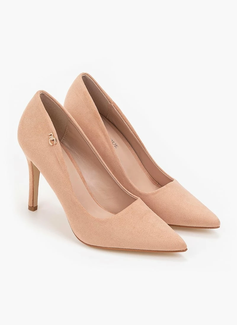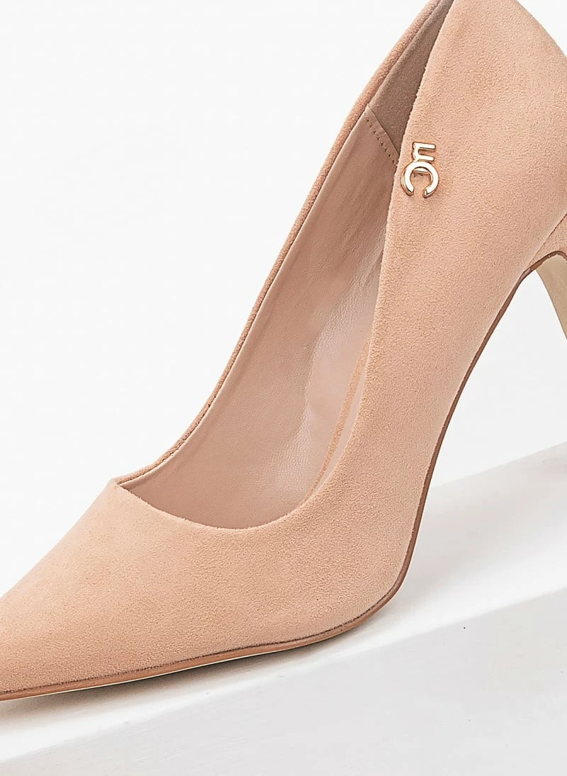 Suede μυτερές γόβες με ψηλό λεπτό τακούνι. Έχουν μικρό μεταλλικό διακοσμητικό.
