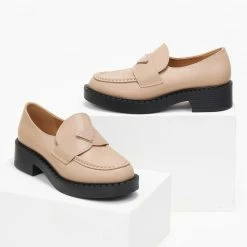 Loafers chunky με ψηλή σόλα. Έχουν εξωτερική ραφή στο επάνω μέρος. Μεταλλικό διακοσμητικό στο ίδιο χρώμα.