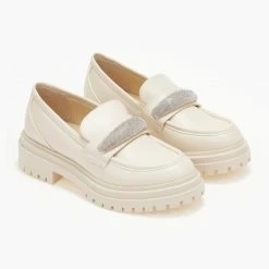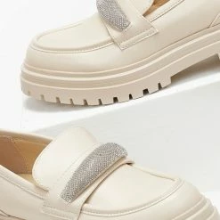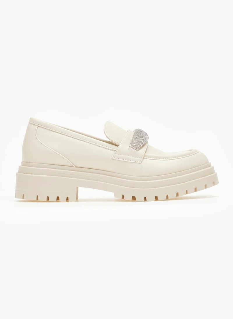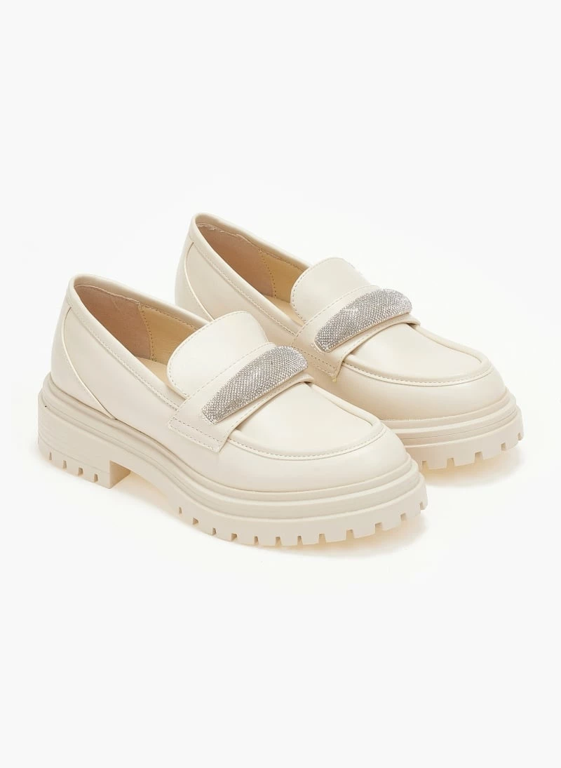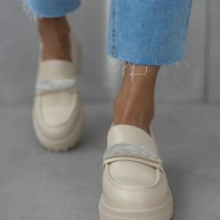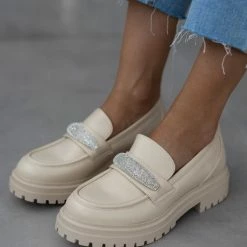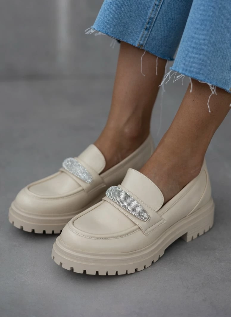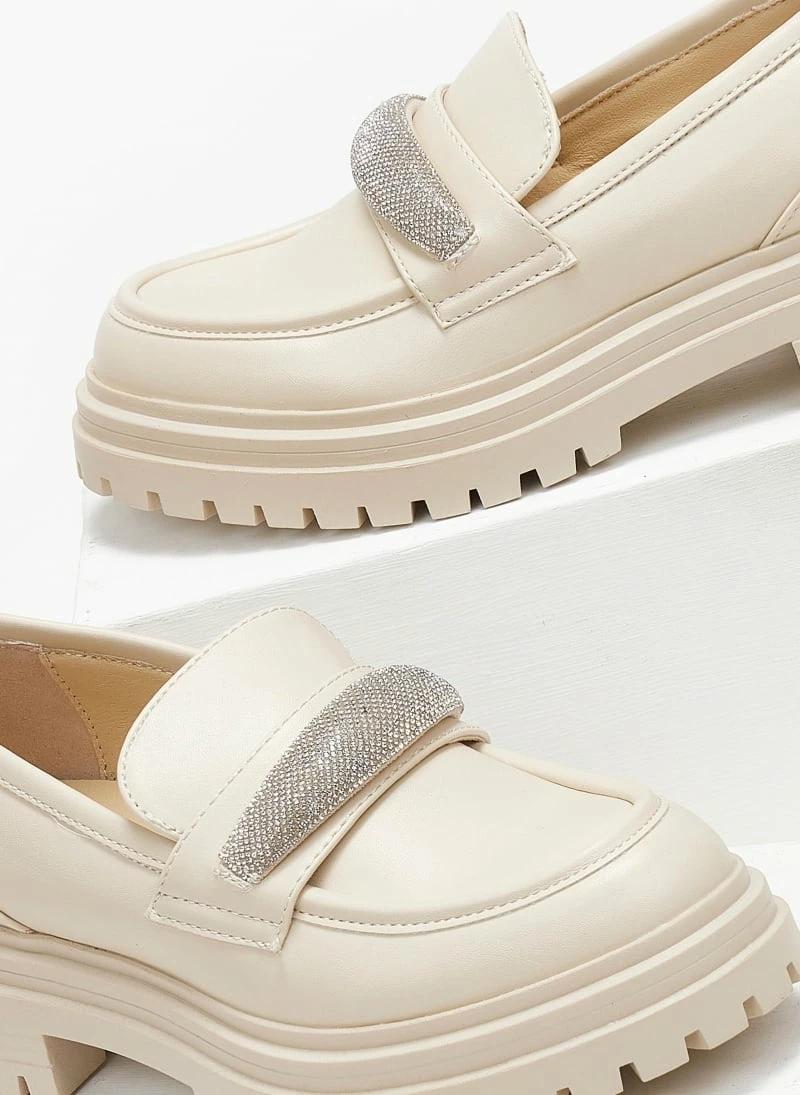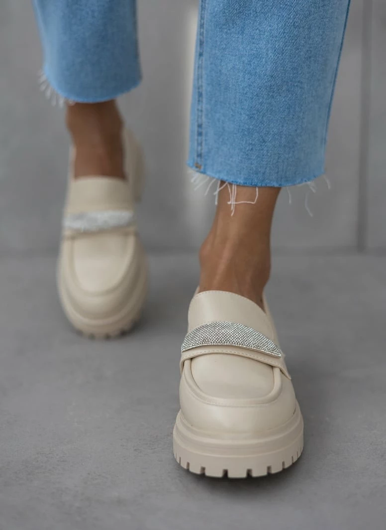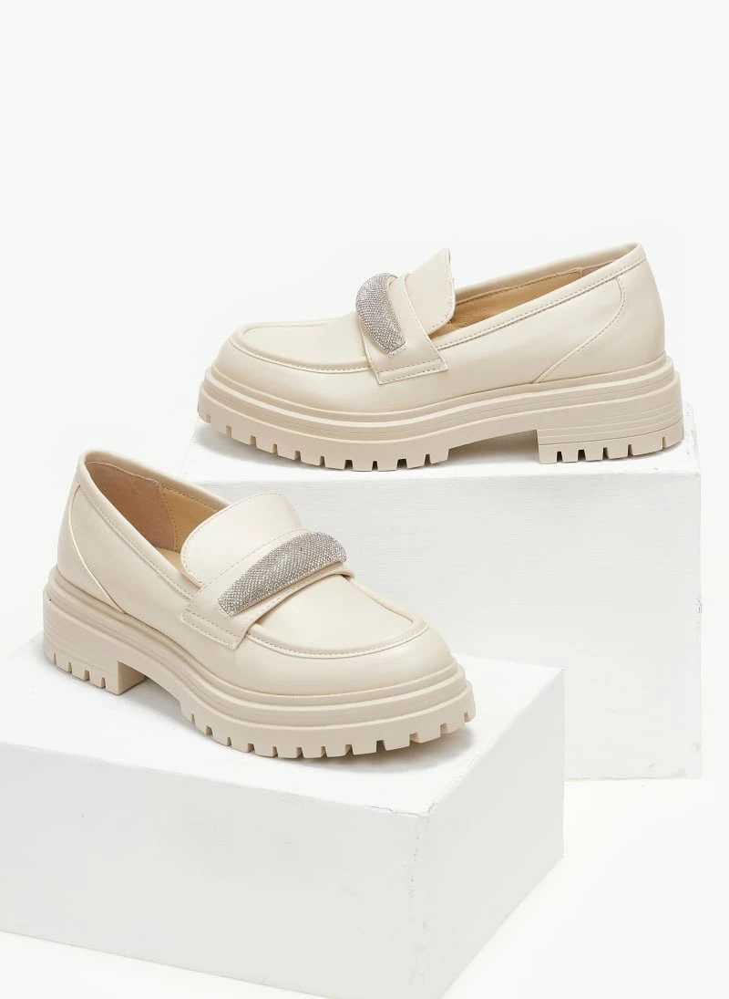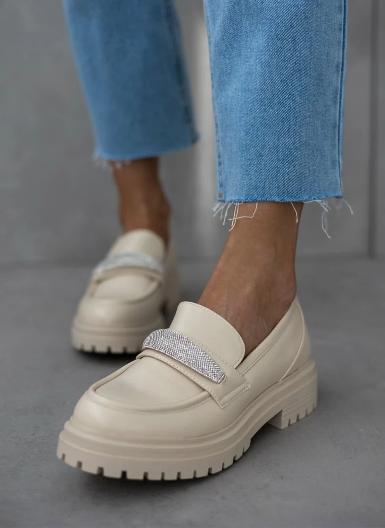 Loafers με chunky τρακτερωτή σόλα. Έχουν έντονο διακοσμητικό με strass στο επάνω μέρος.