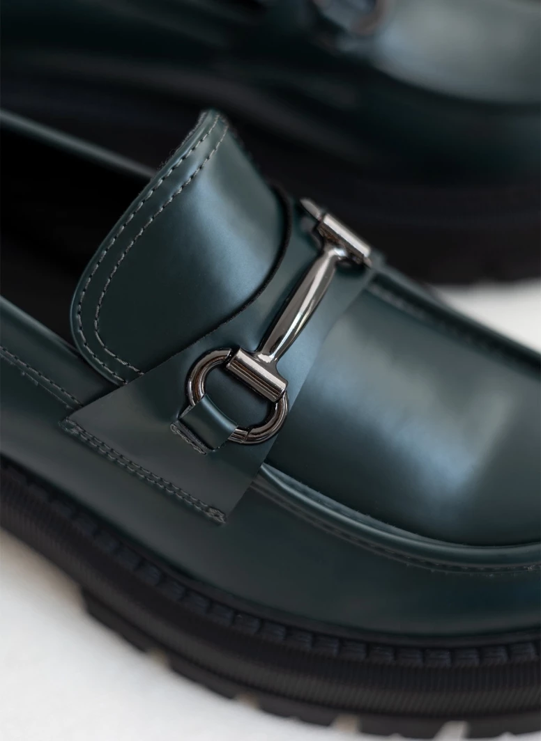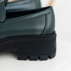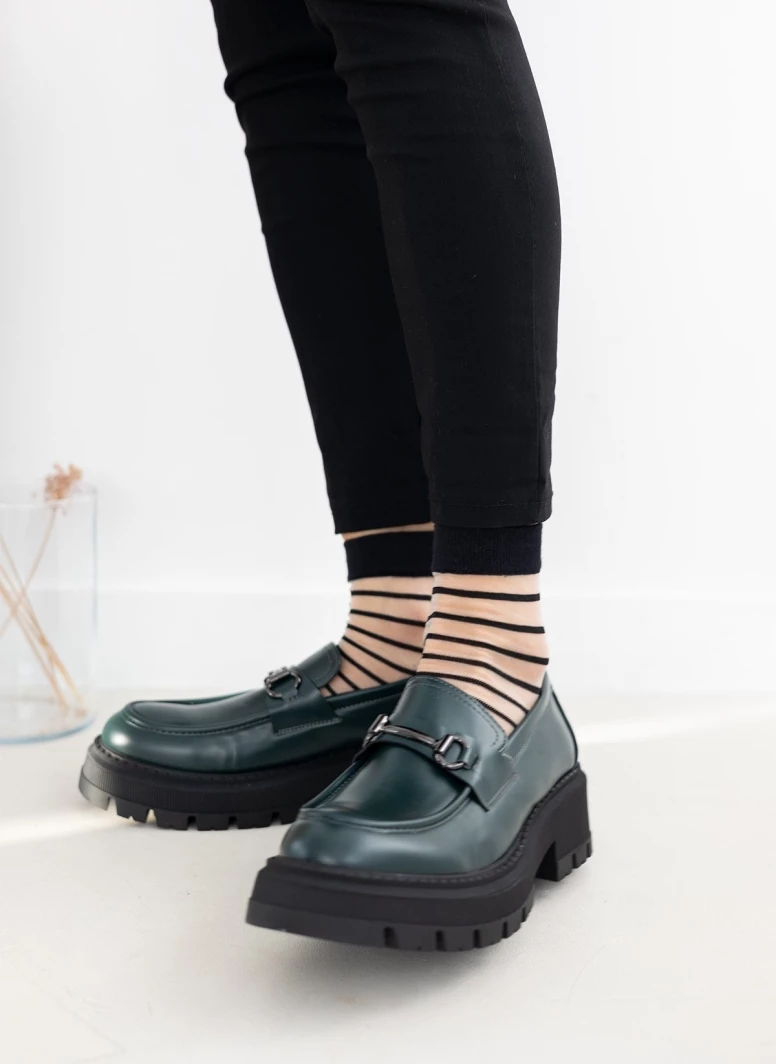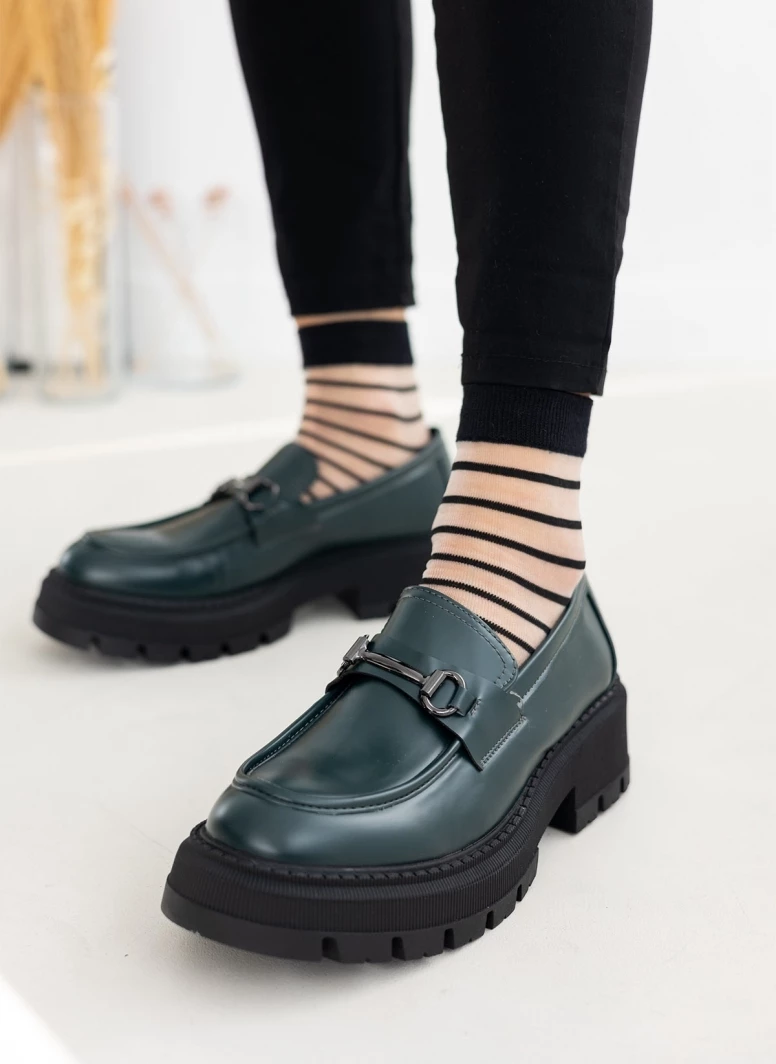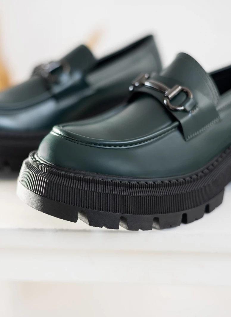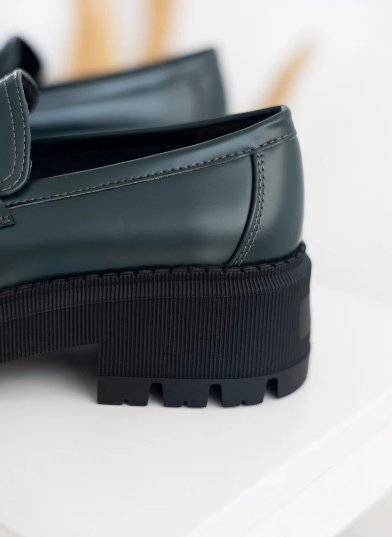Loafers με chunky τρακτερωτή σόλα. Έχουν μεταλλικό στοιχείο και εξωτερική ραφή στη μπροστινή πλευρά.