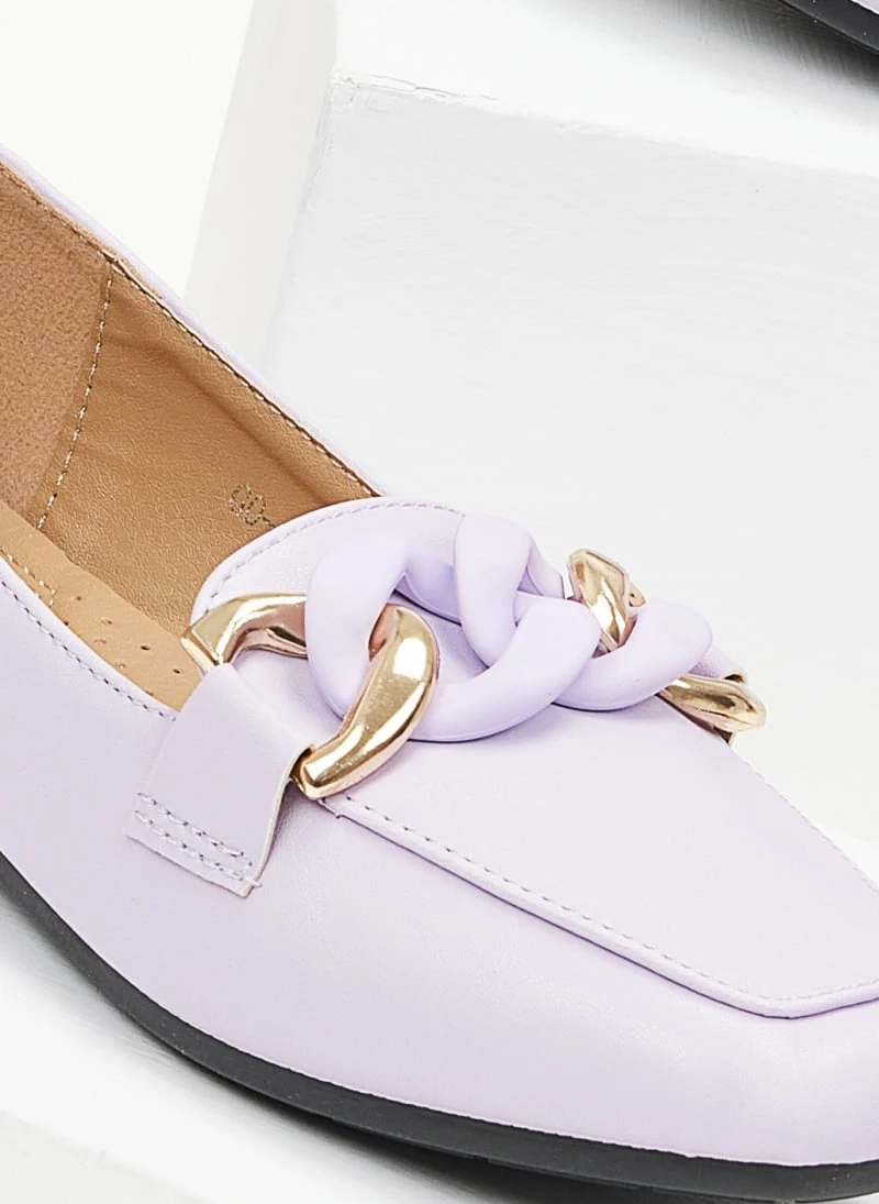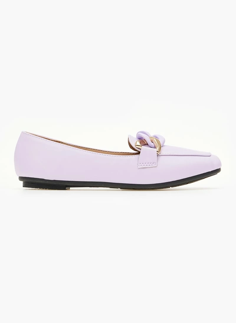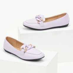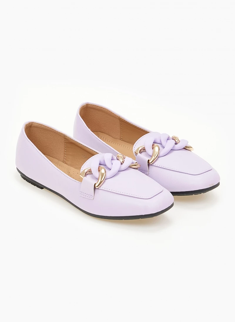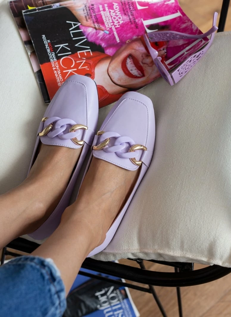 Καρέ loafers με μαλακή σόλα από λάστιχο. Έχουν μεγάλους κρίκους σε ματ χρώμα.