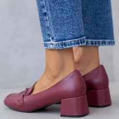 Loafers με χαμηλό τετράγωνο τακούνι. Έχουν αγκράφα στο ίδιο χρώμα.
