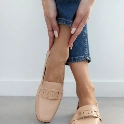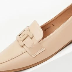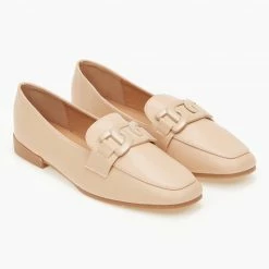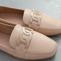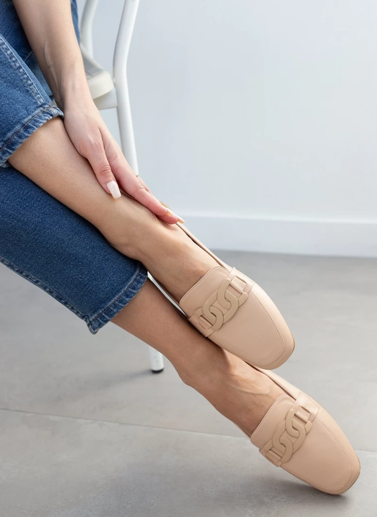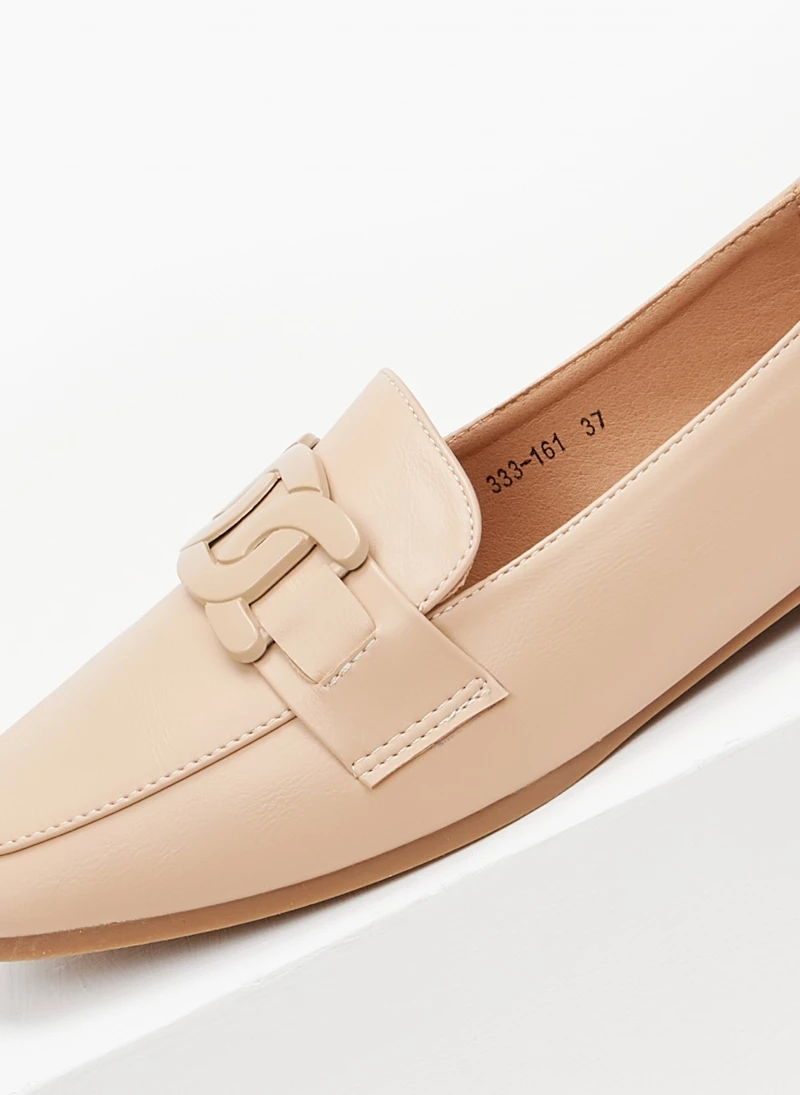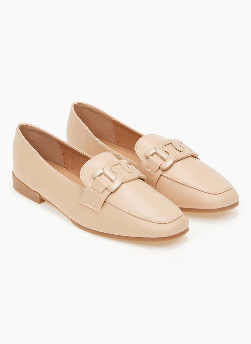 Loafers με ματ διακοσμητικό μεταλλικό στοιχείο στο ίδιο χρώμα.Καρέ γραμμή.Έχουν μαλακή σόλα από λάστιχο.