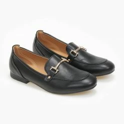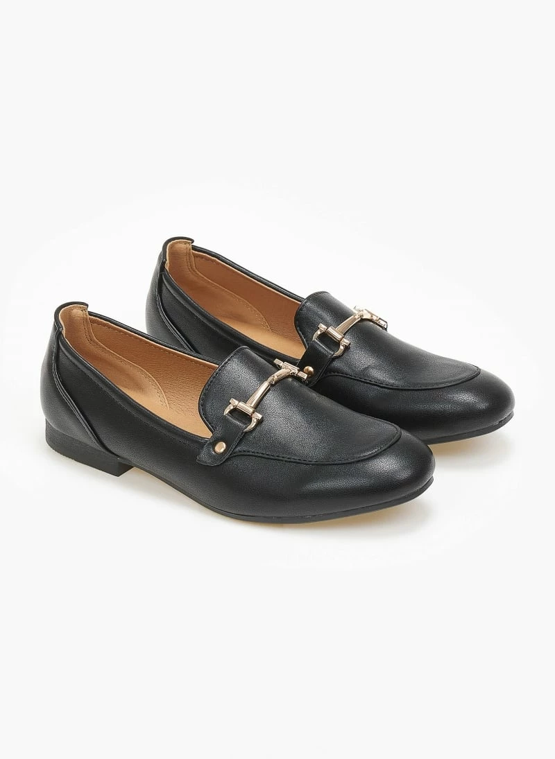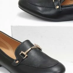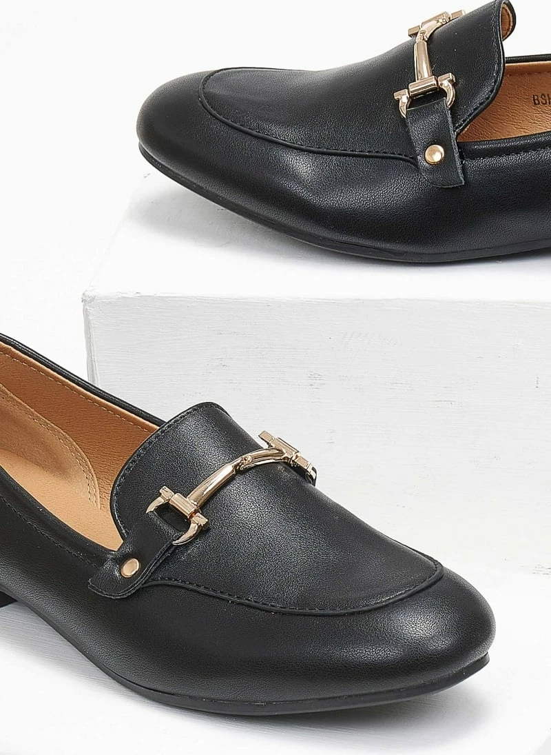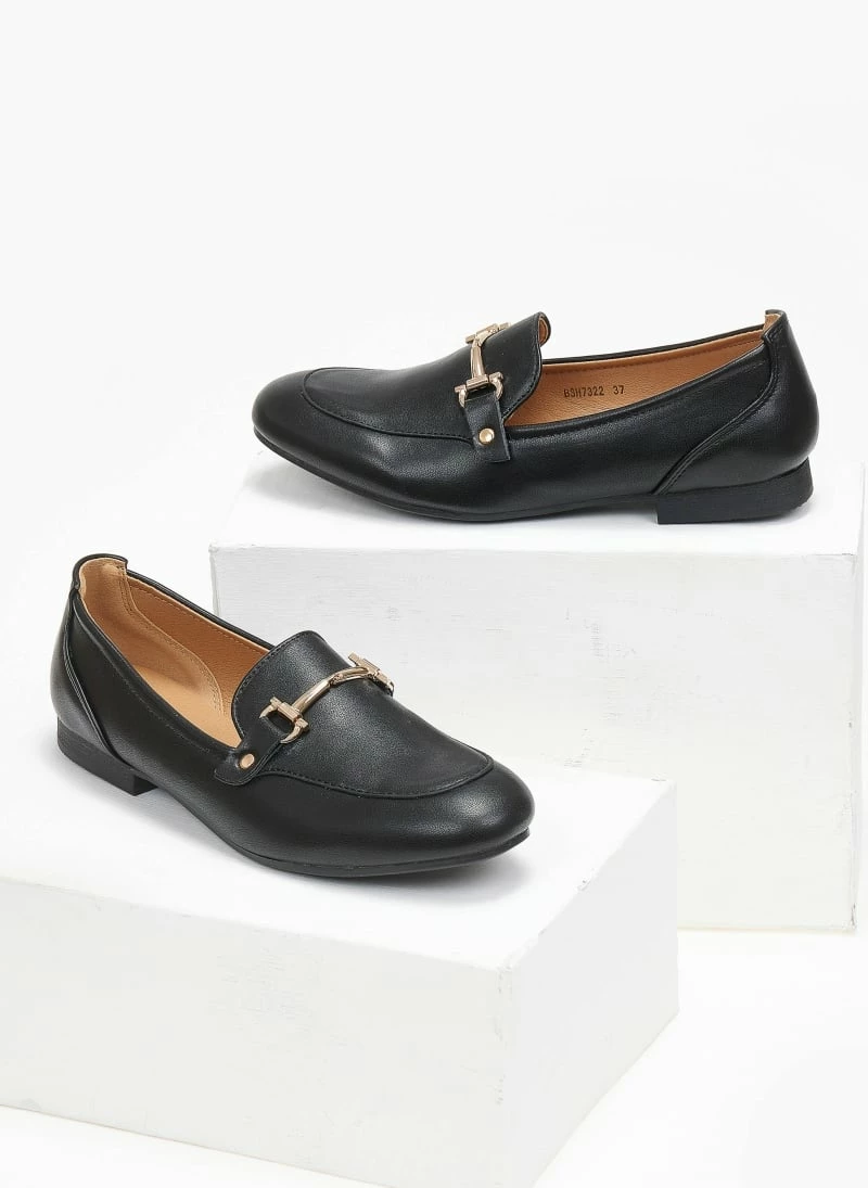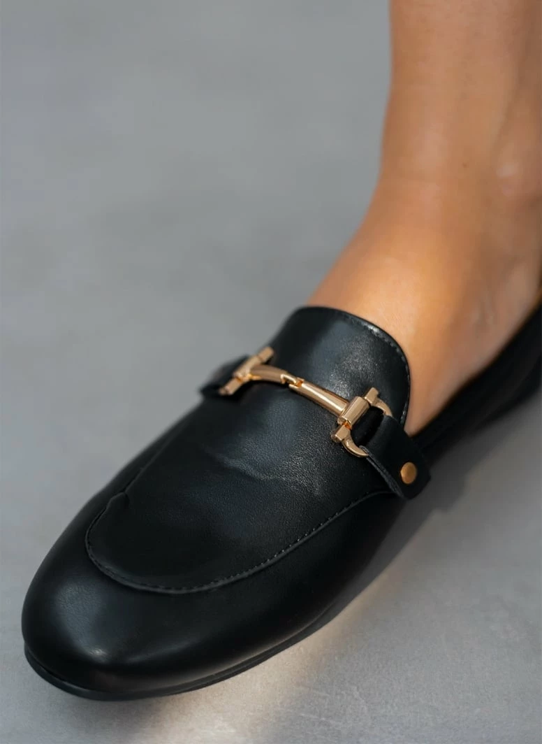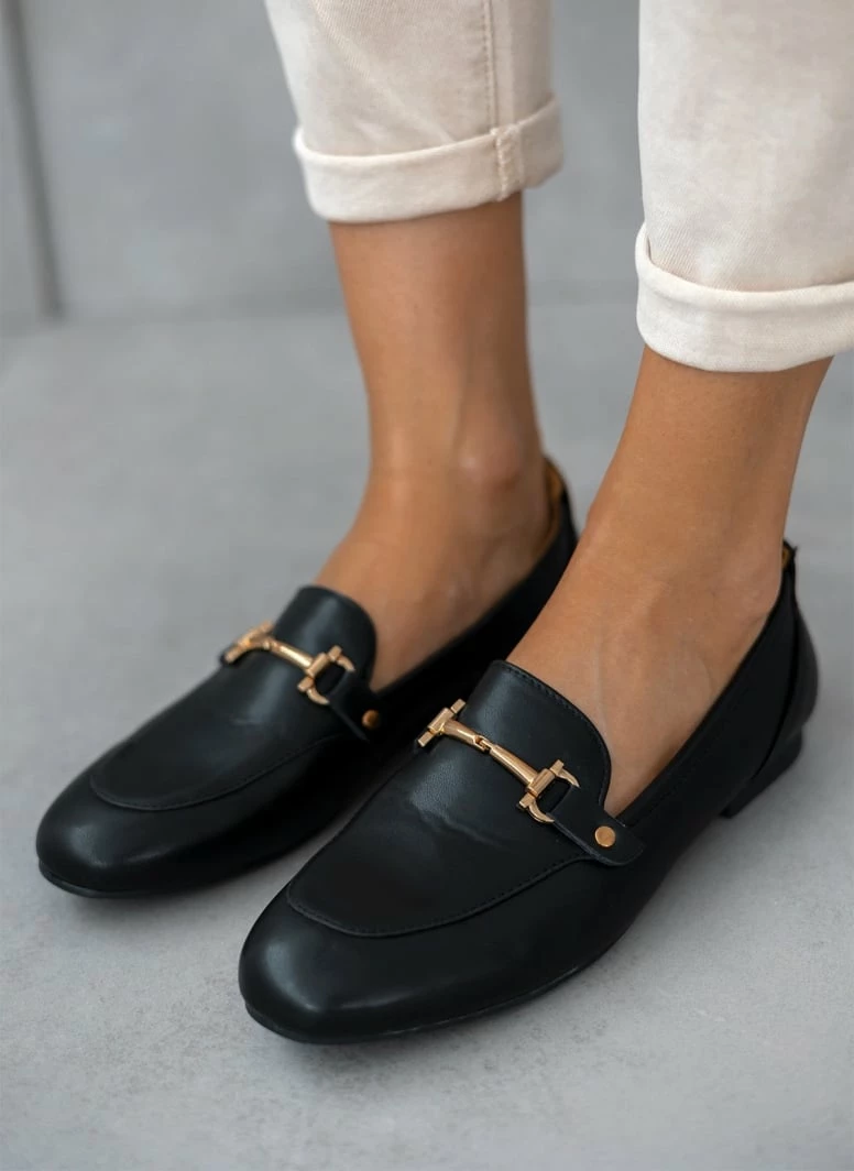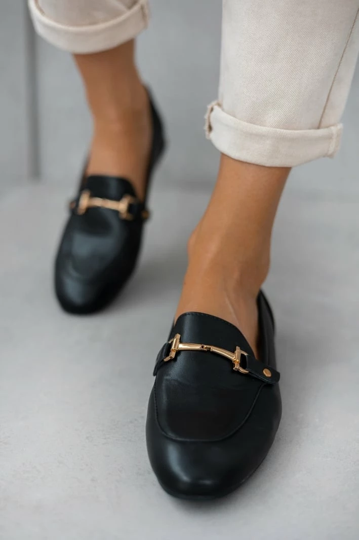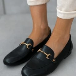 Loafers με μεταλλική αγκράφα. Έχουν μαλακή σόλα από λάστιχο. Στρογγυλή γραμμή.