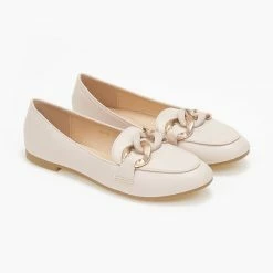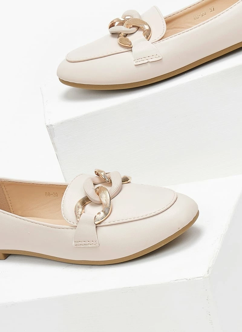 Loafers με αλυσίδα σε ματ και μεταλλικό χρώμα. Σόλα από λάστιχο.
