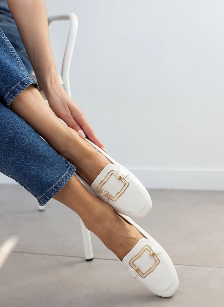 Loafers με τετράγωνη μεταλλική αγκράφα.Έχουν μαλακή σόλα από λάσττιχο.