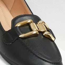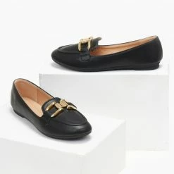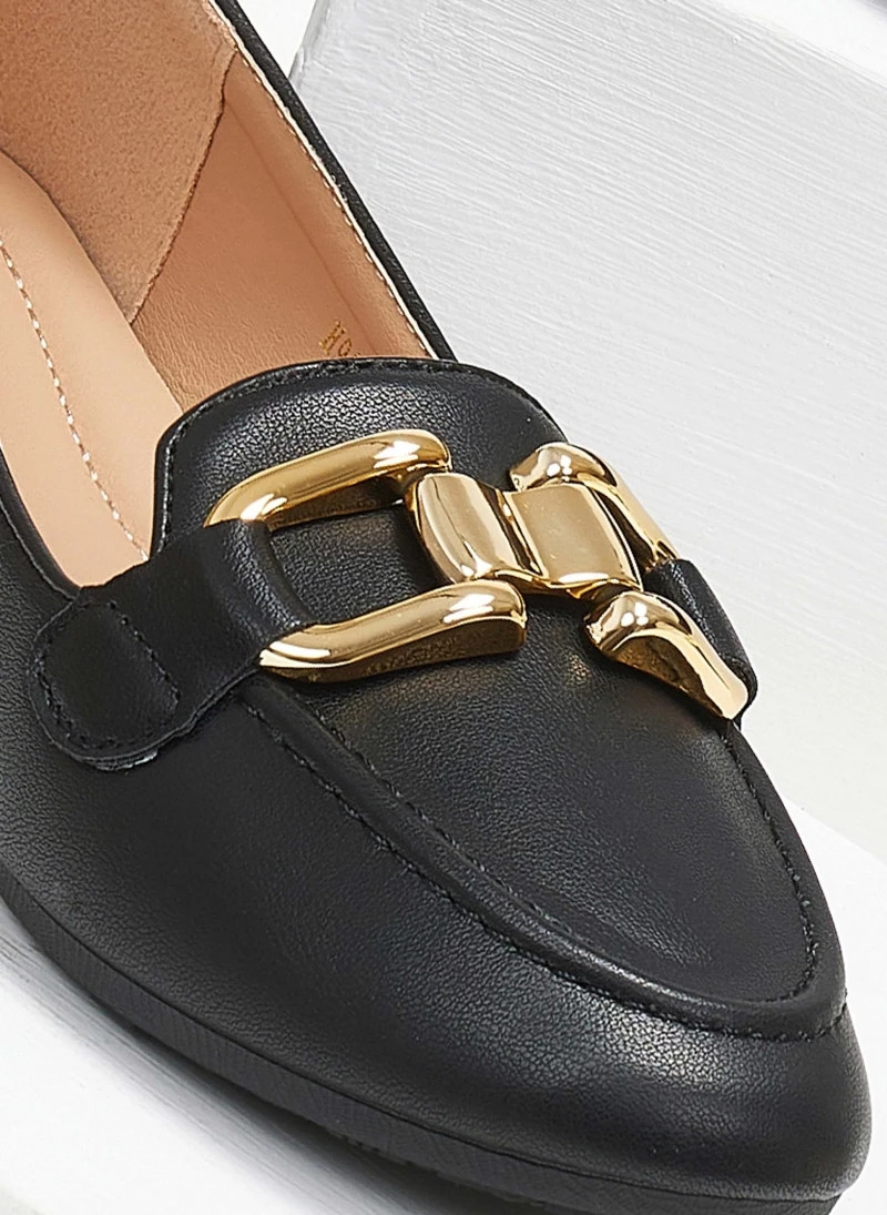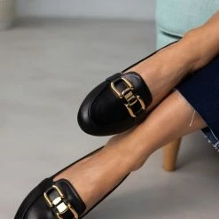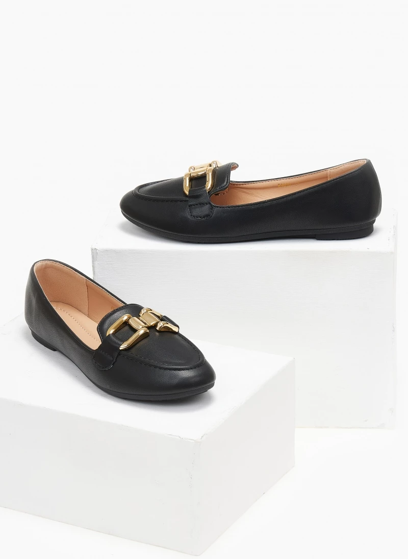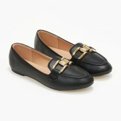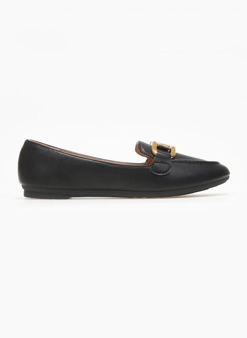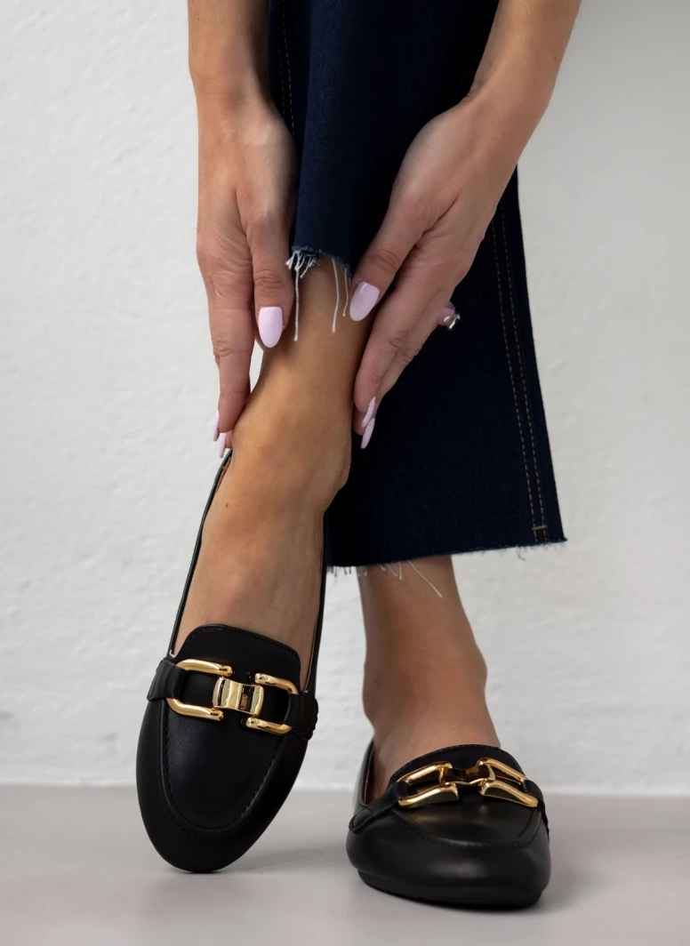 Μοκασίνια με μεταλλικό διακοσμητικό. Έχουν εξωτερική ραφή στο επάνω μέρος. Μαλακός πάτος με ενίσχυση. Σόλα από λάστιχο.