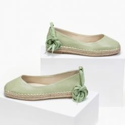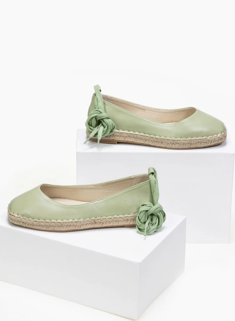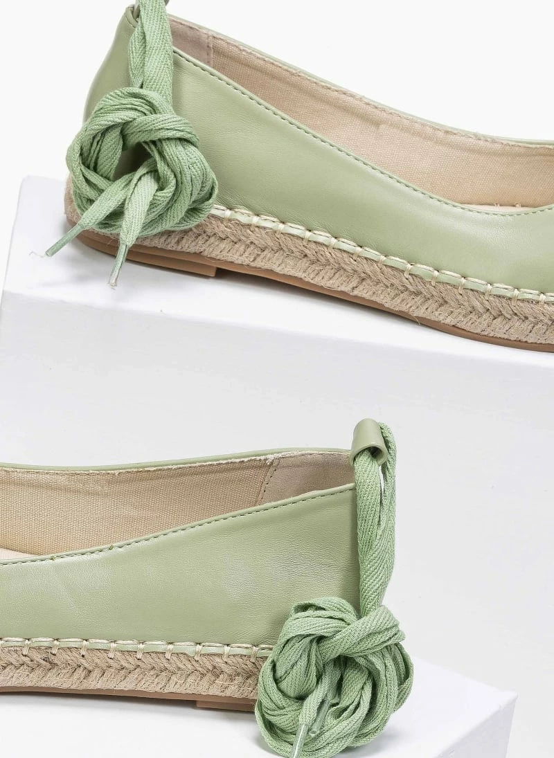 Μπαλαρίνες με σχοινί στη σόλα και εξωτερική ραφή.Δένουν με κορδόνια στη γάμπα.