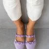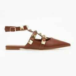 Μυτερές ανοιχτές μπαλαρίνες με μεταλλικά τρουκς. Δένουν με μπαρέτα στο ύψος του αστραγάλου.