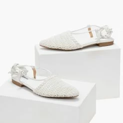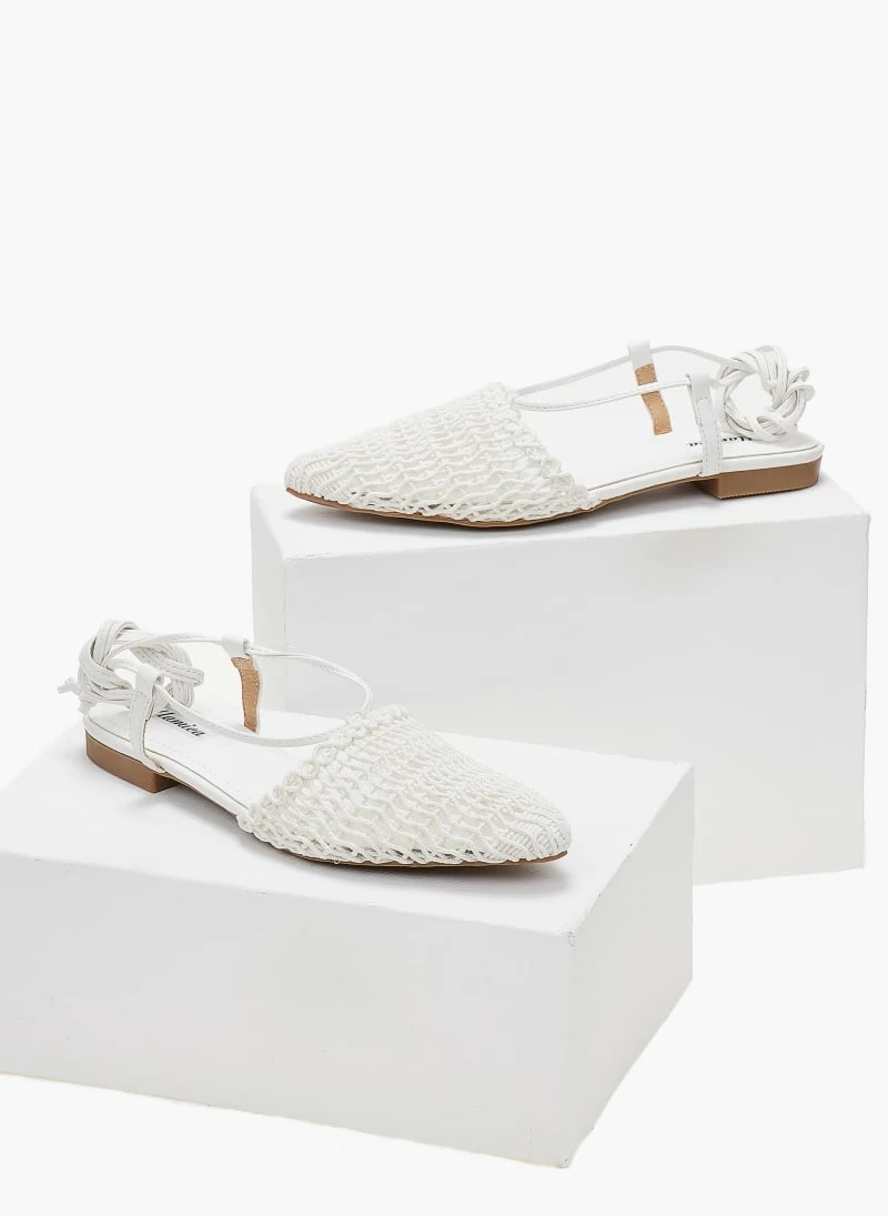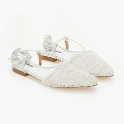 Μπαλαρίνες μυτερές με πλεκτό σχέδιο. Δένουν με κορδόνια στη γάμπα.