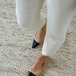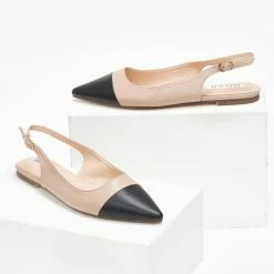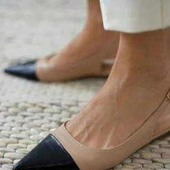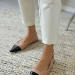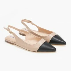 Μυτερές φλατ μπαλαρίνες. Έχουν λουράκι στο ύψος του αστραγάλου. Mat υλικό.