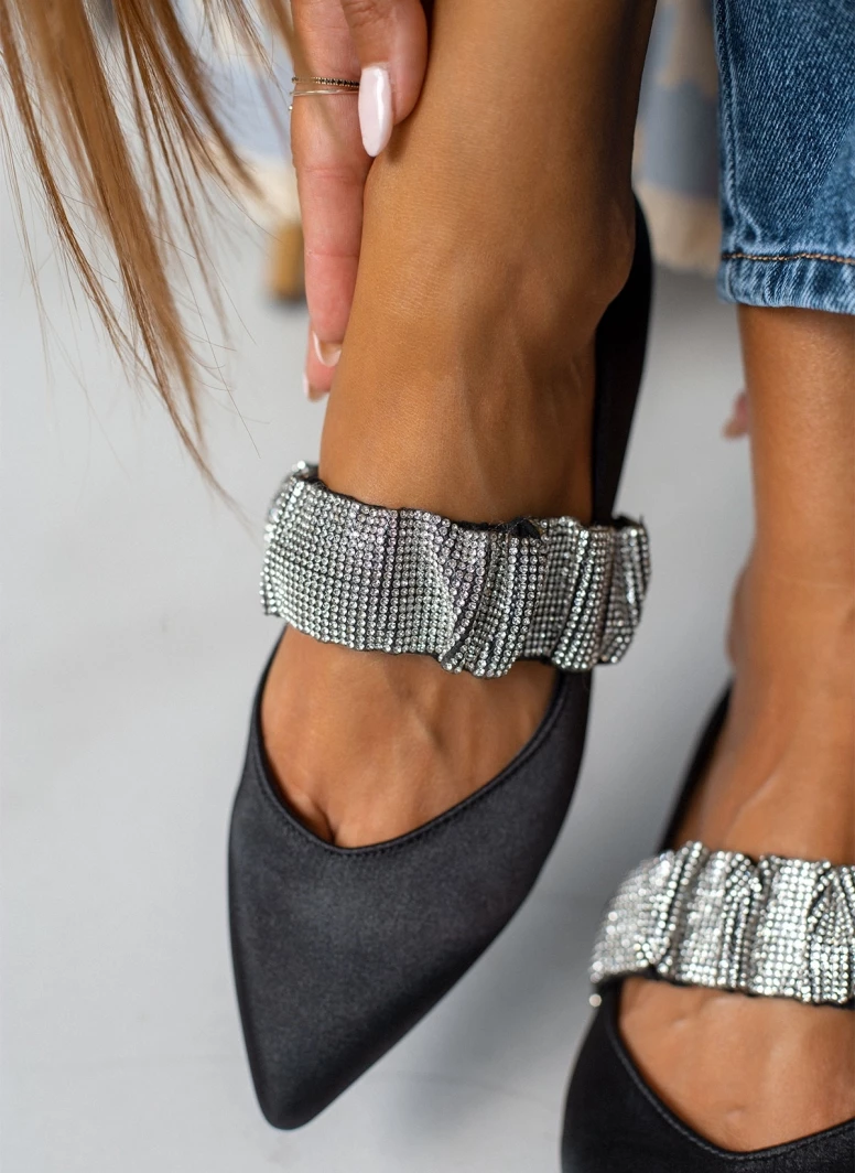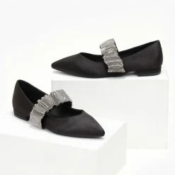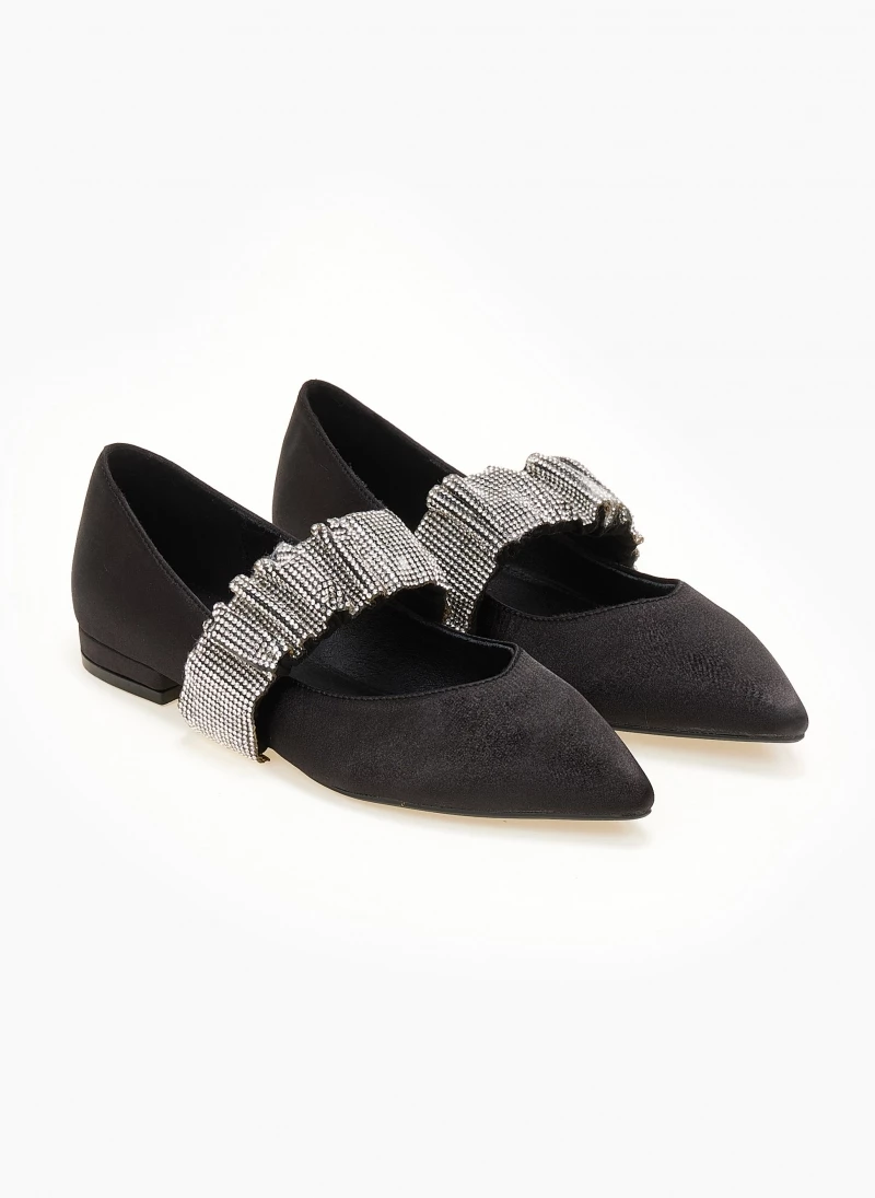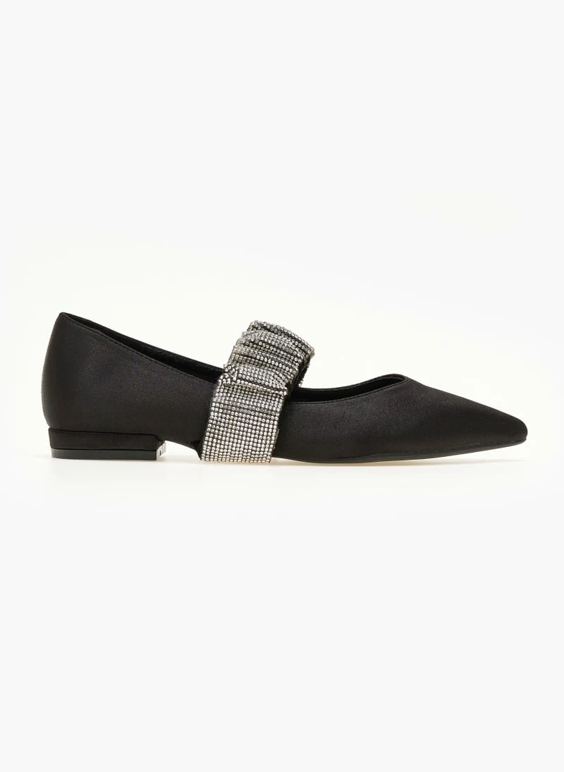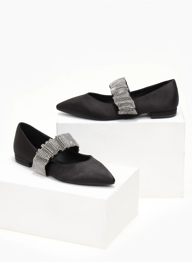Μπαλαρίνες μυτερές σατέν. Έχουν ελαστική strass φάσα στο κουτεπιέ.