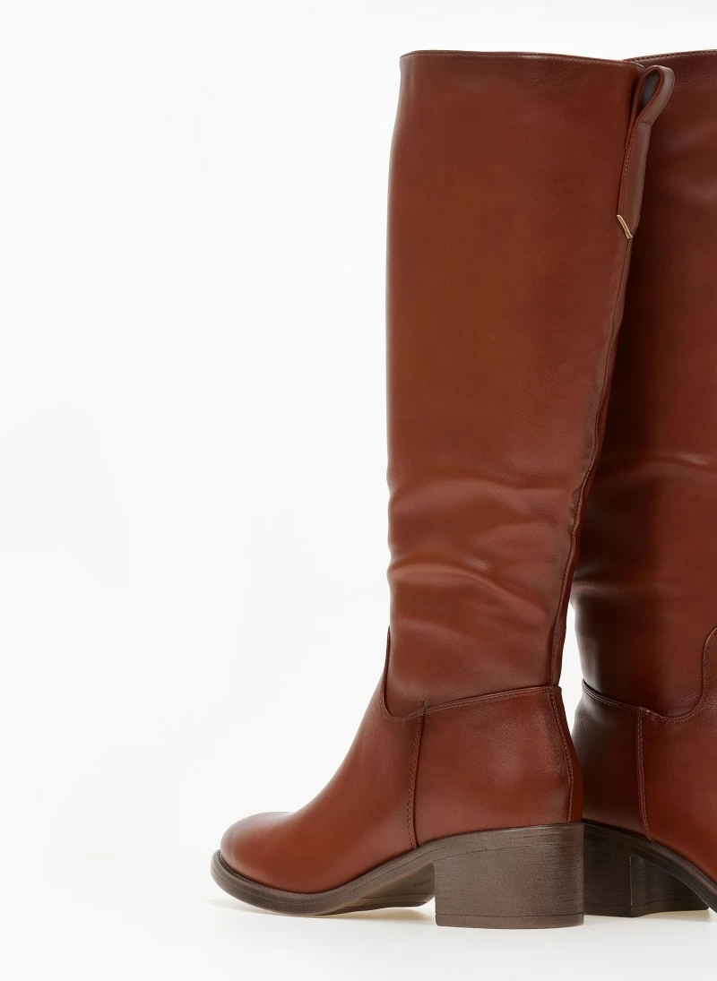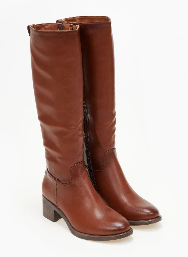 Μπότες casual με χαμηλό τετράγωνο τακούνι. Έχουν στρογγυλή φόρμα. Εξωτερική ραφή περιμετρικά της σόλας.