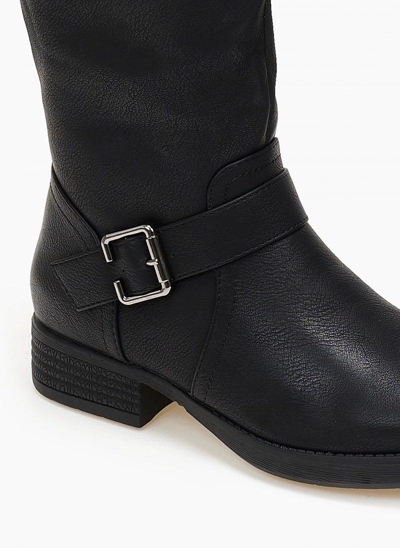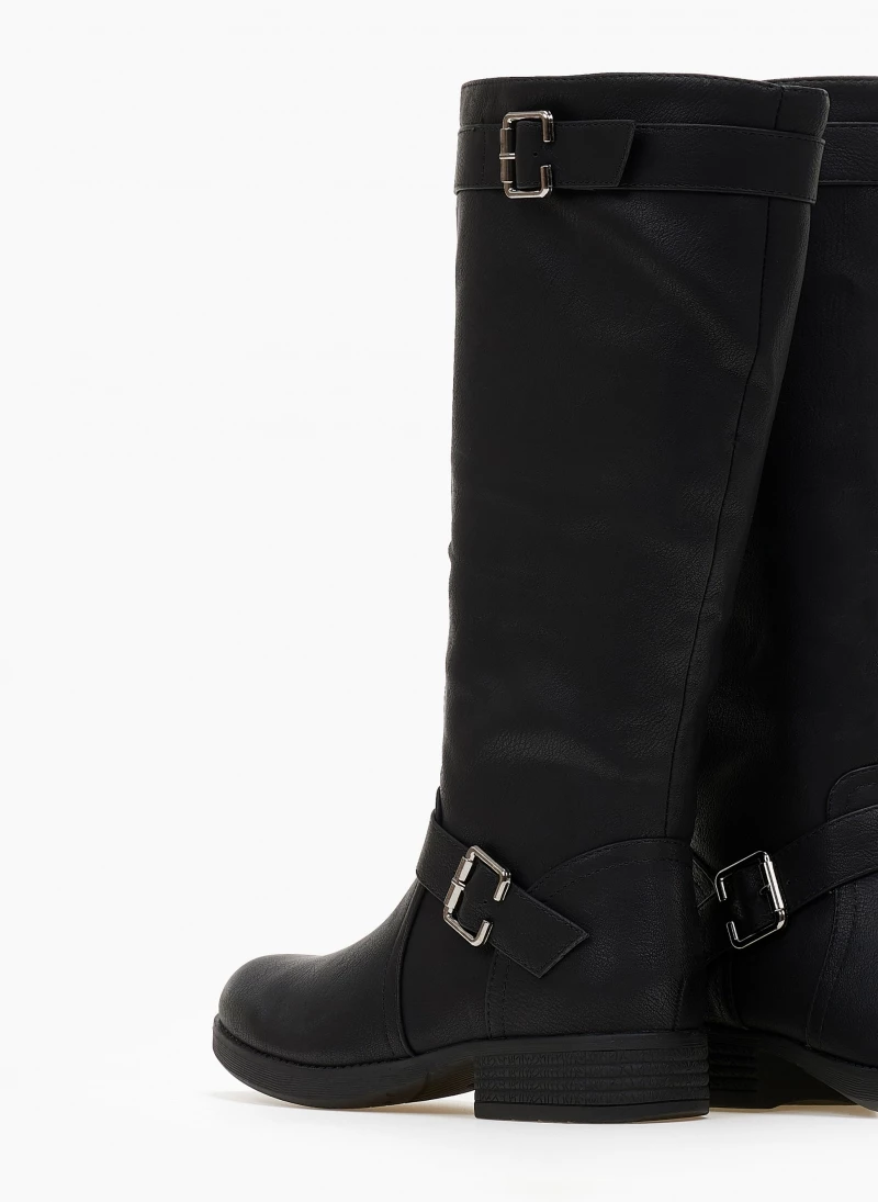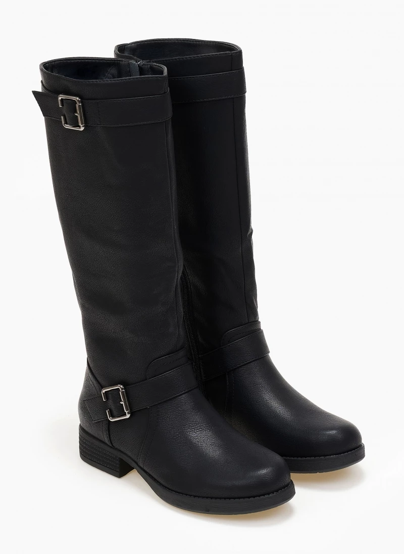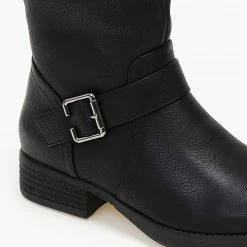 Μπότες casual σε στρογγυλή γραμμή. Έχουν ζωνάκι στο ύψος του αστραγάλου και το τελείωμα. Σόλα από λάστιχο.