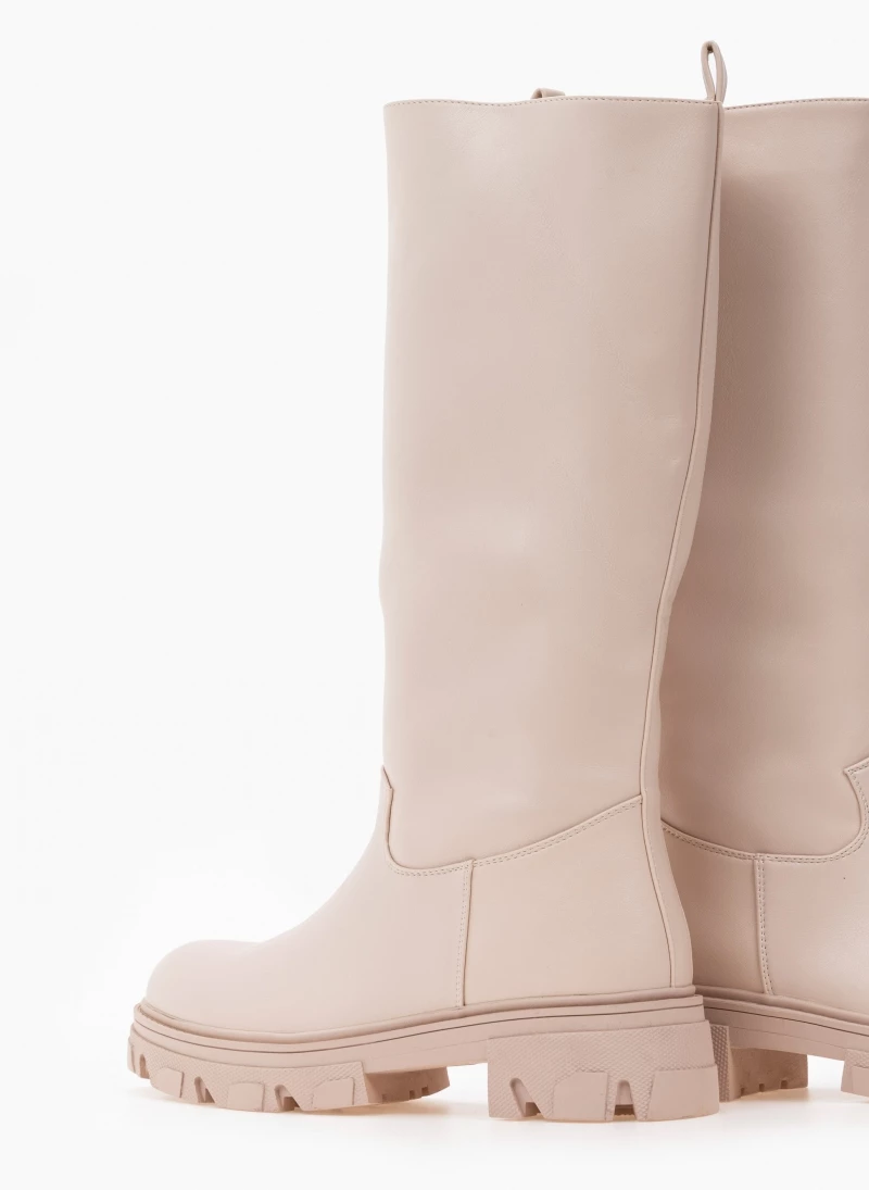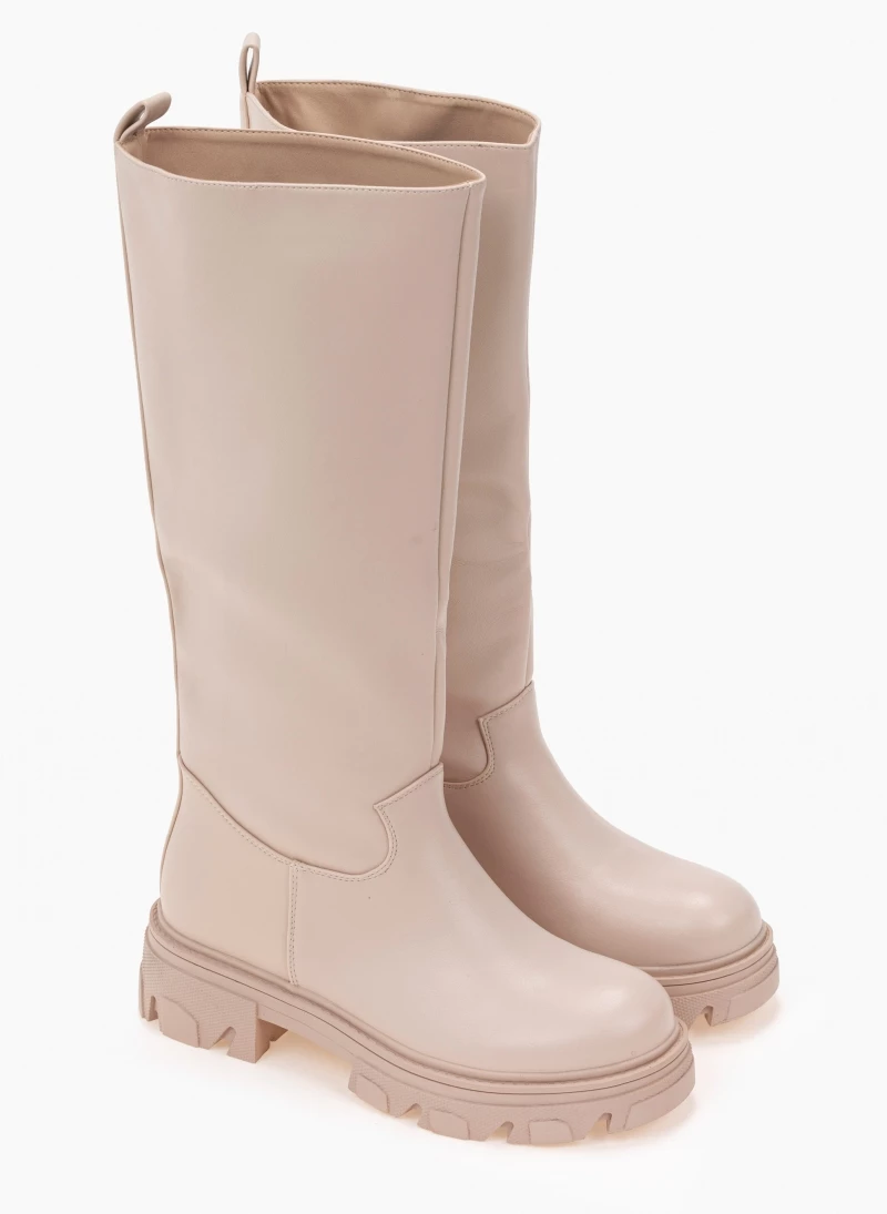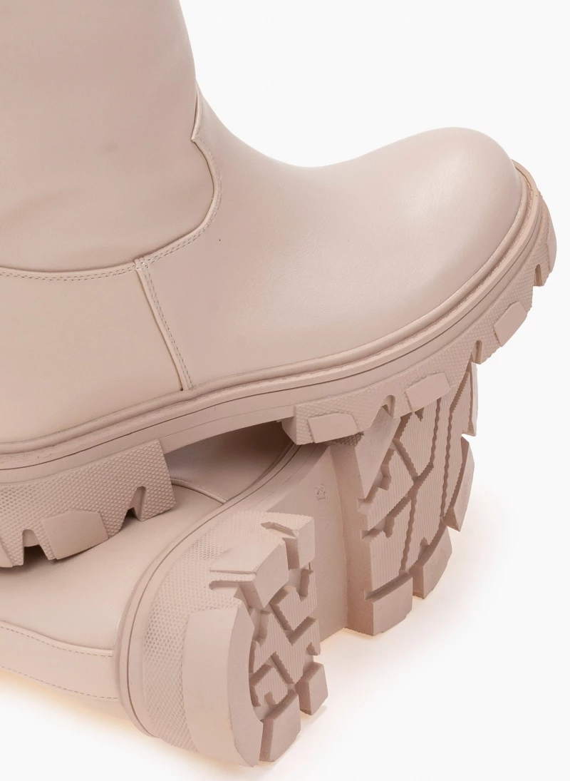 Φλατ μπότες με chunky σόλα. Δεν έχουν φερμουάρ. Στρογγυλή γραμμή.