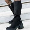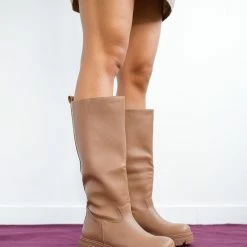 Φλατ μπότες με chunky σόλα. Δεν έχουν φερμουάρ. Στρογγυλή γραμμή.