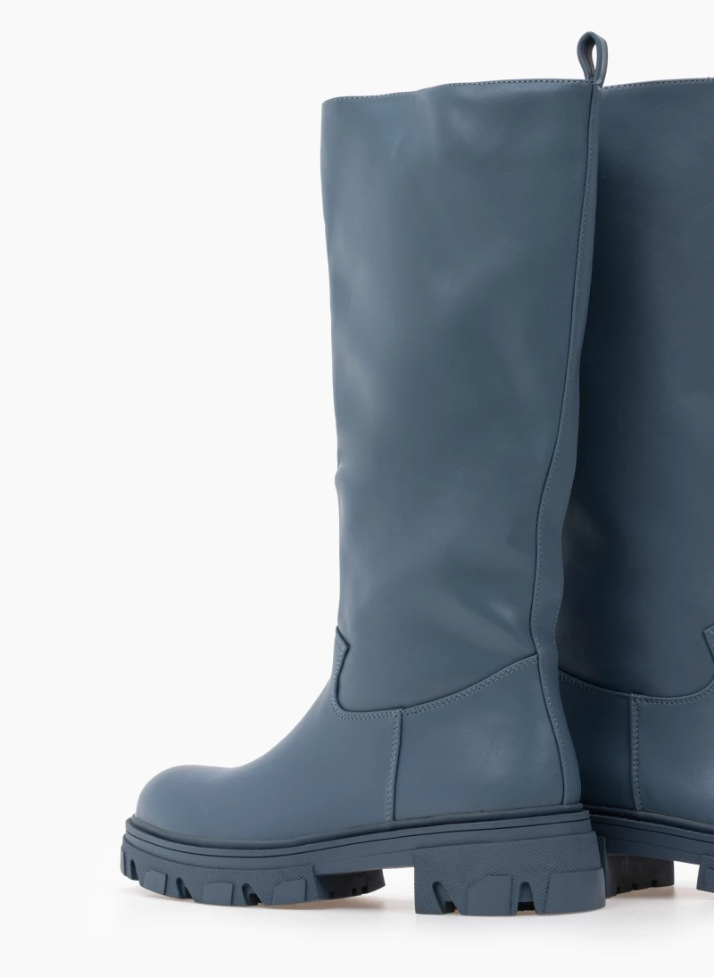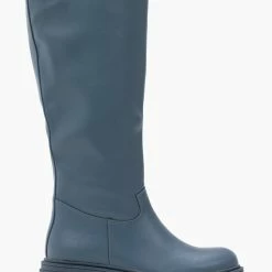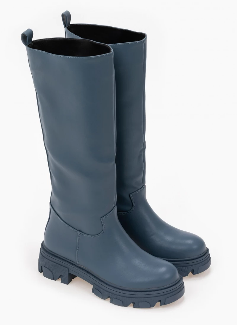 Φλατ μπότες με chunky σόλα. Δεν έχουν φερμουάρ. Στρογγυλή γραμμή.