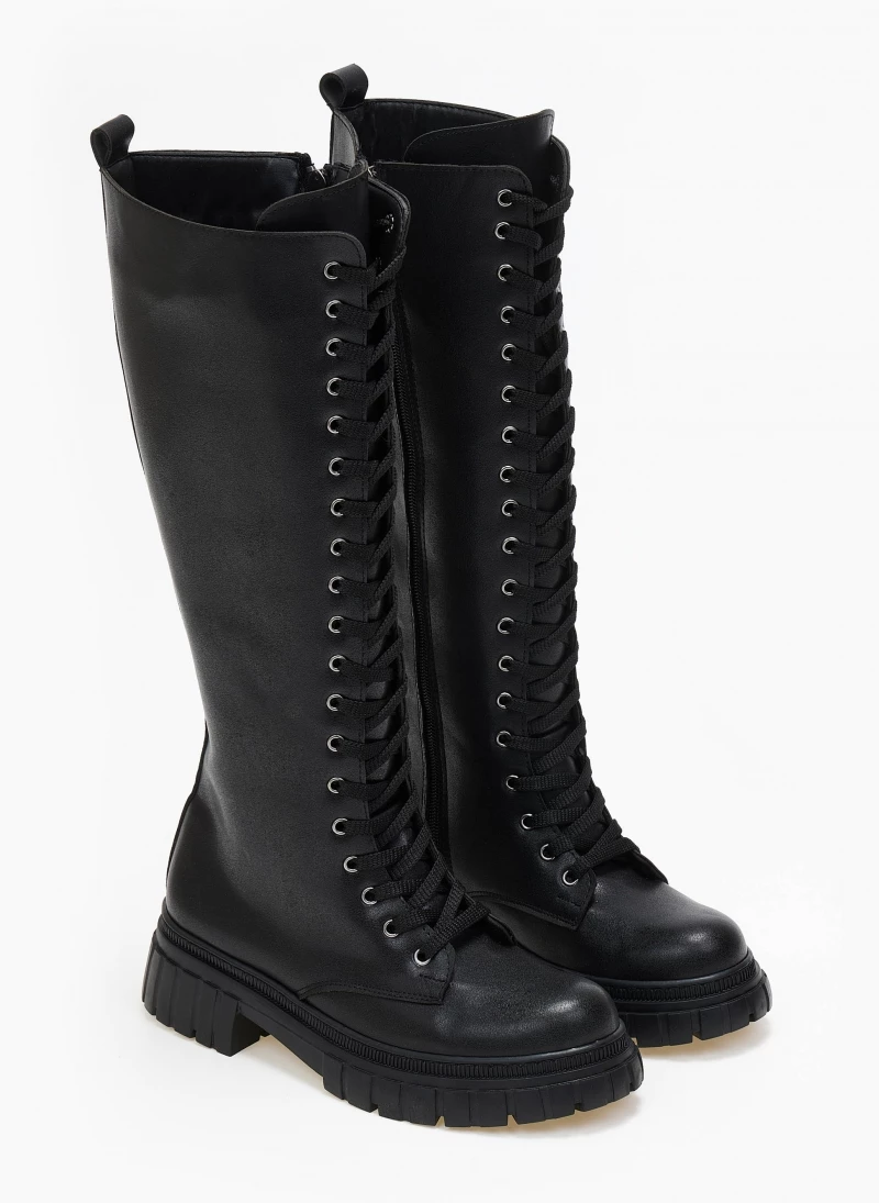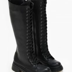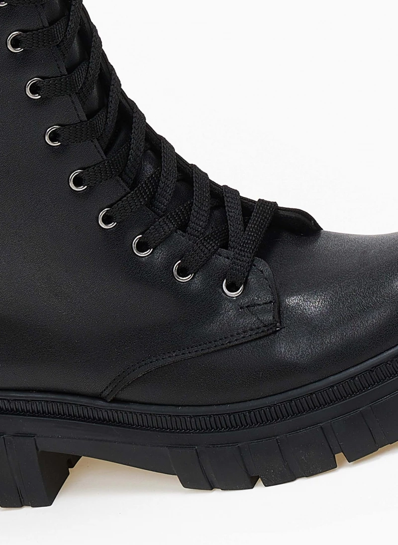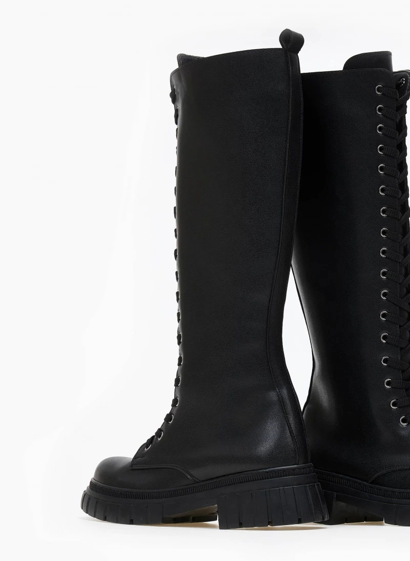 Μπότες με κορδόνια. Έχουν chunky σόλα με σχέδιο. Φερμουάρ στην εσωτερική τους πλευρά. Ελληνικής κατασκευής.