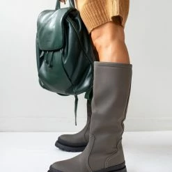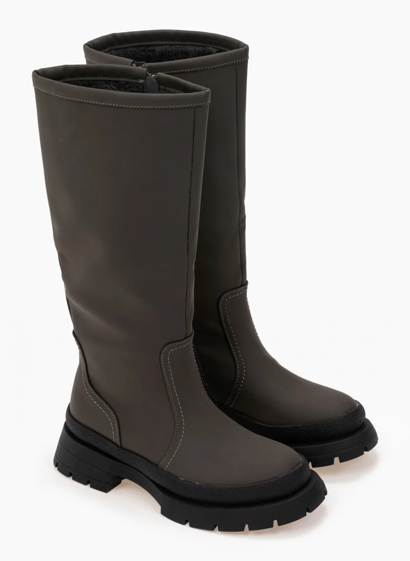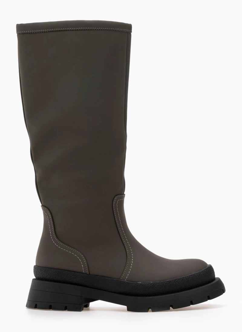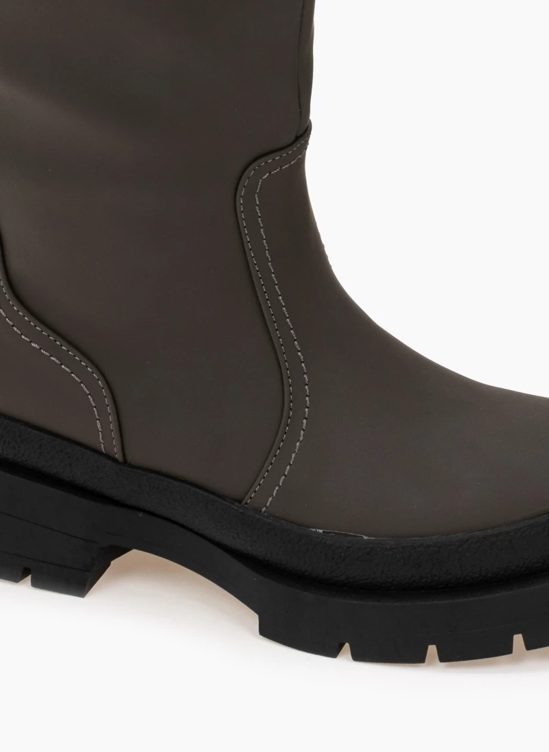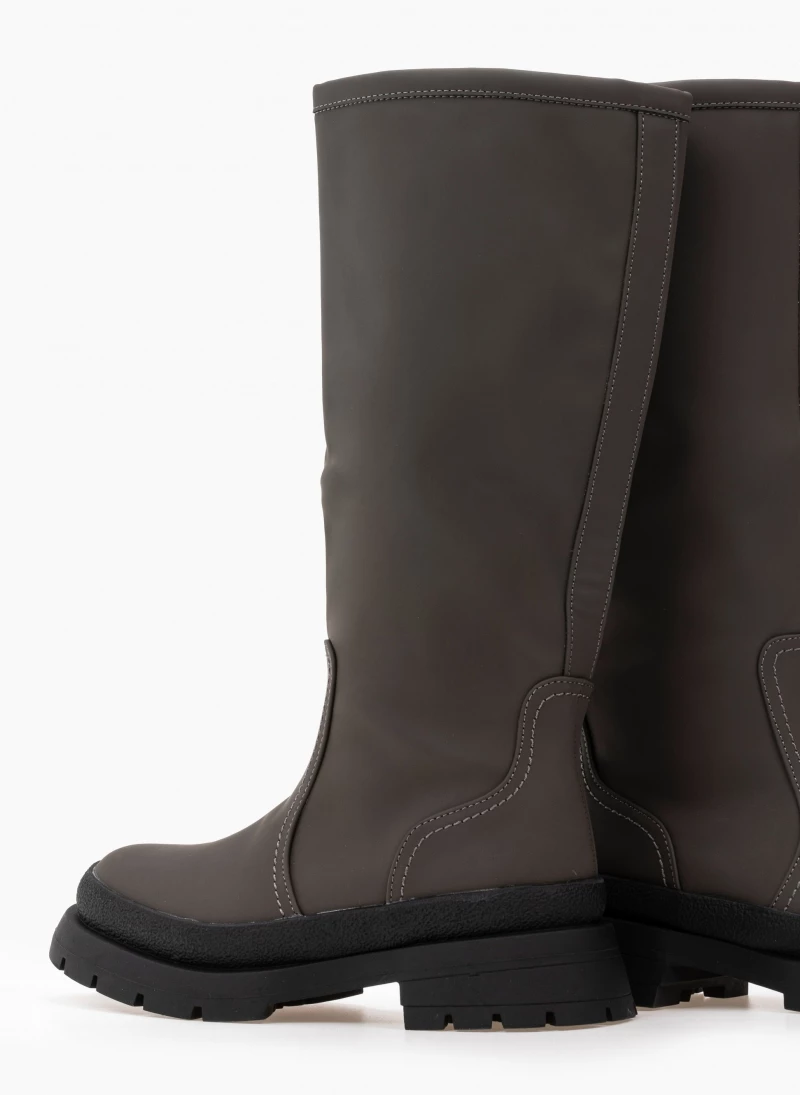 Ματ ίσιες μπότες με ιδιαίτερη σόλα. Στρογγυλή γραμμή.